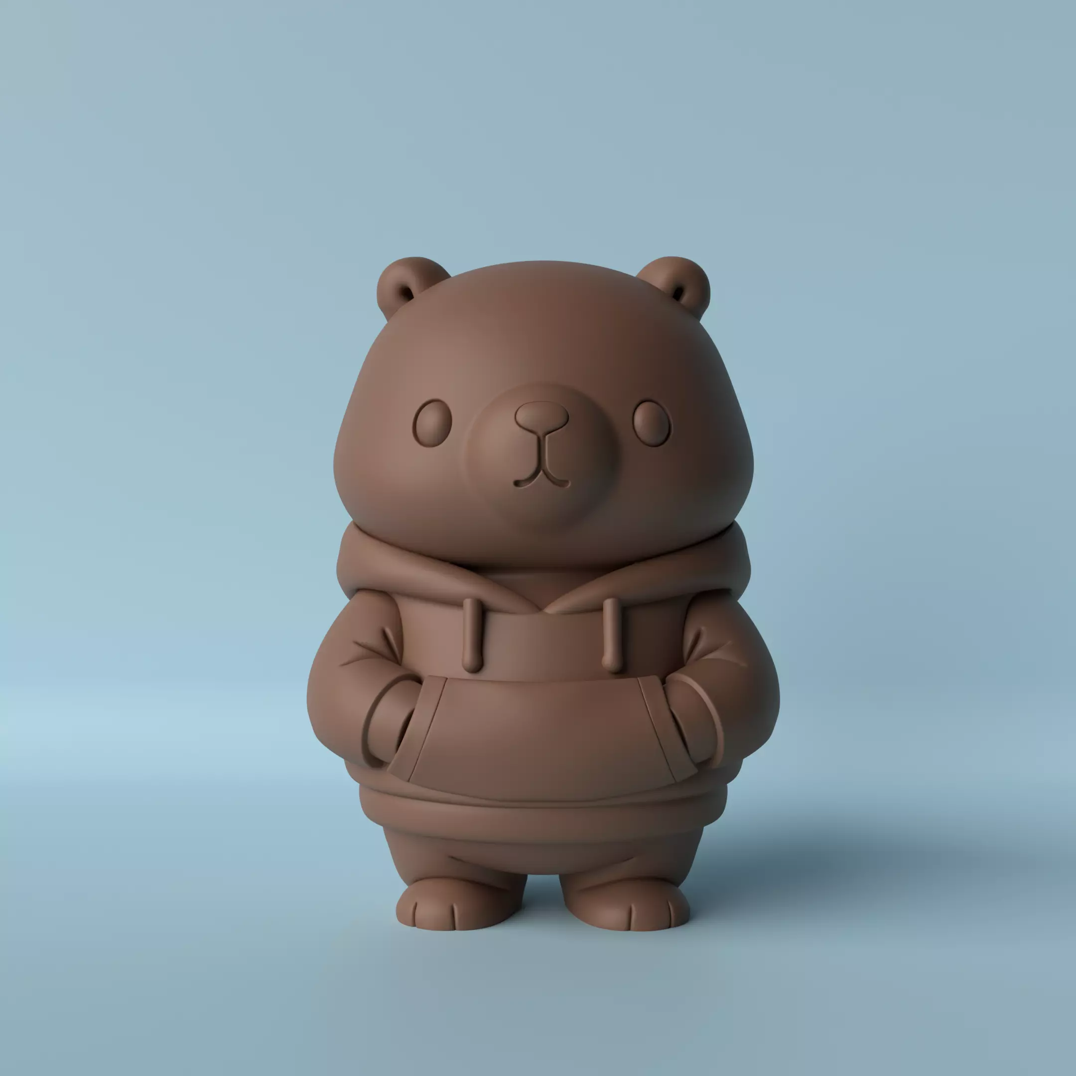 This adorable bear is dressed in a cozy hoodie with its hands tucked into the front pocket, giving the character a relaxed and playful personality. The simplified shapes, smooth surfaces, and subtle details create a clean and appealing design that works beautifully as a decorative collectible.