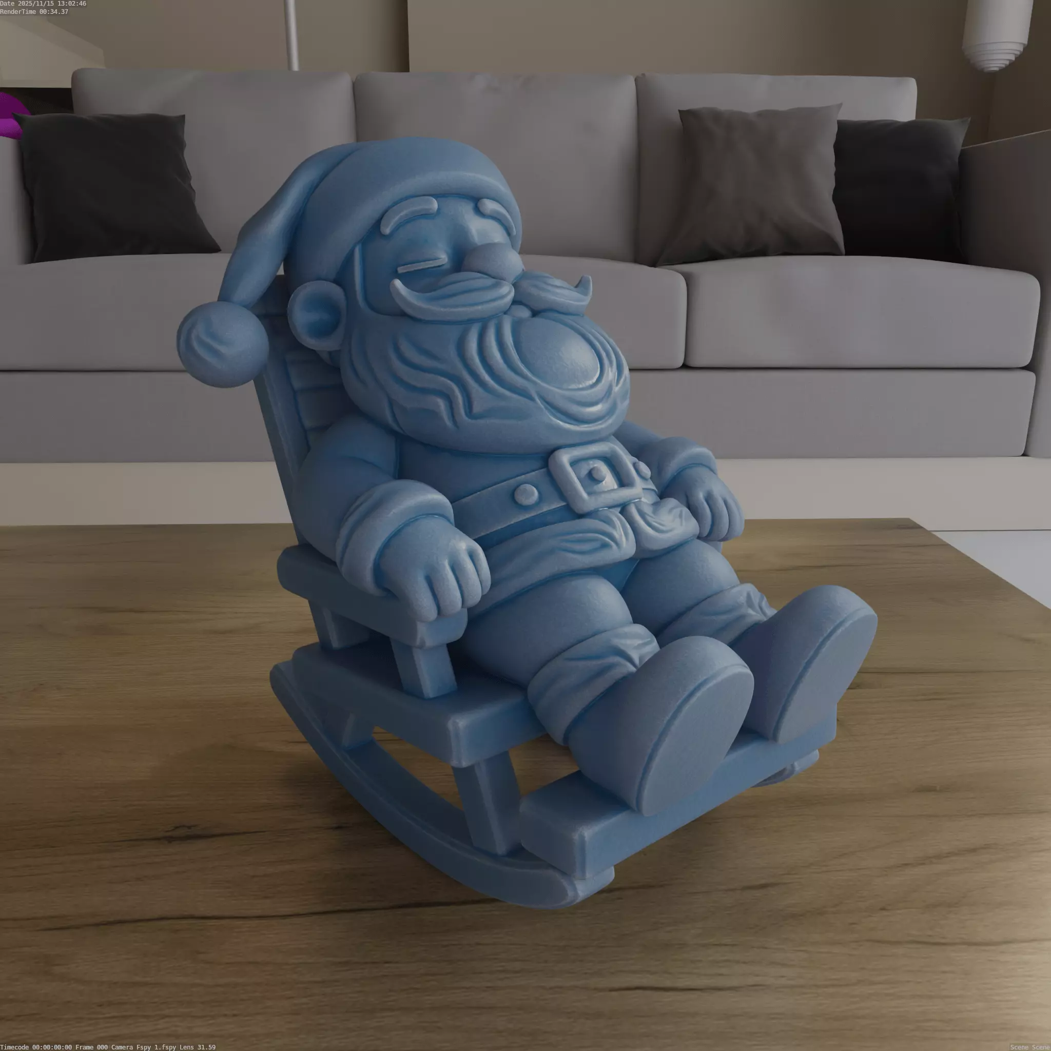 Get ready for the holidays with this cute 3D model of Santa Claus. He is resting and sleeping peacefully in his rocking chair. This charming figure is a perfect decoration for your home during Christmas. It is designed to be easy to print and will look wonderful anywhere you place it.