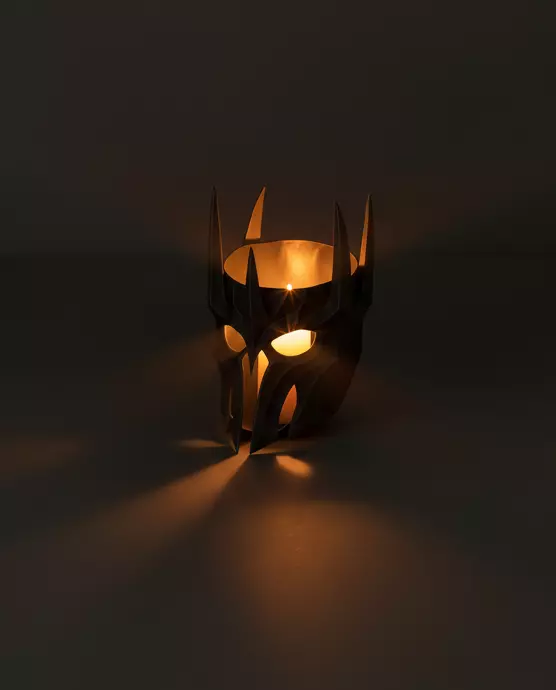 Design ConceptThe Dark Lord's Helmet candle holder is inspired by the iconic dark fantasy aesthetics, serving as both a decorative piece and a functional candle holder. Its imposing design allows light to flicker through the cuts, creating an enchanting ambiance.