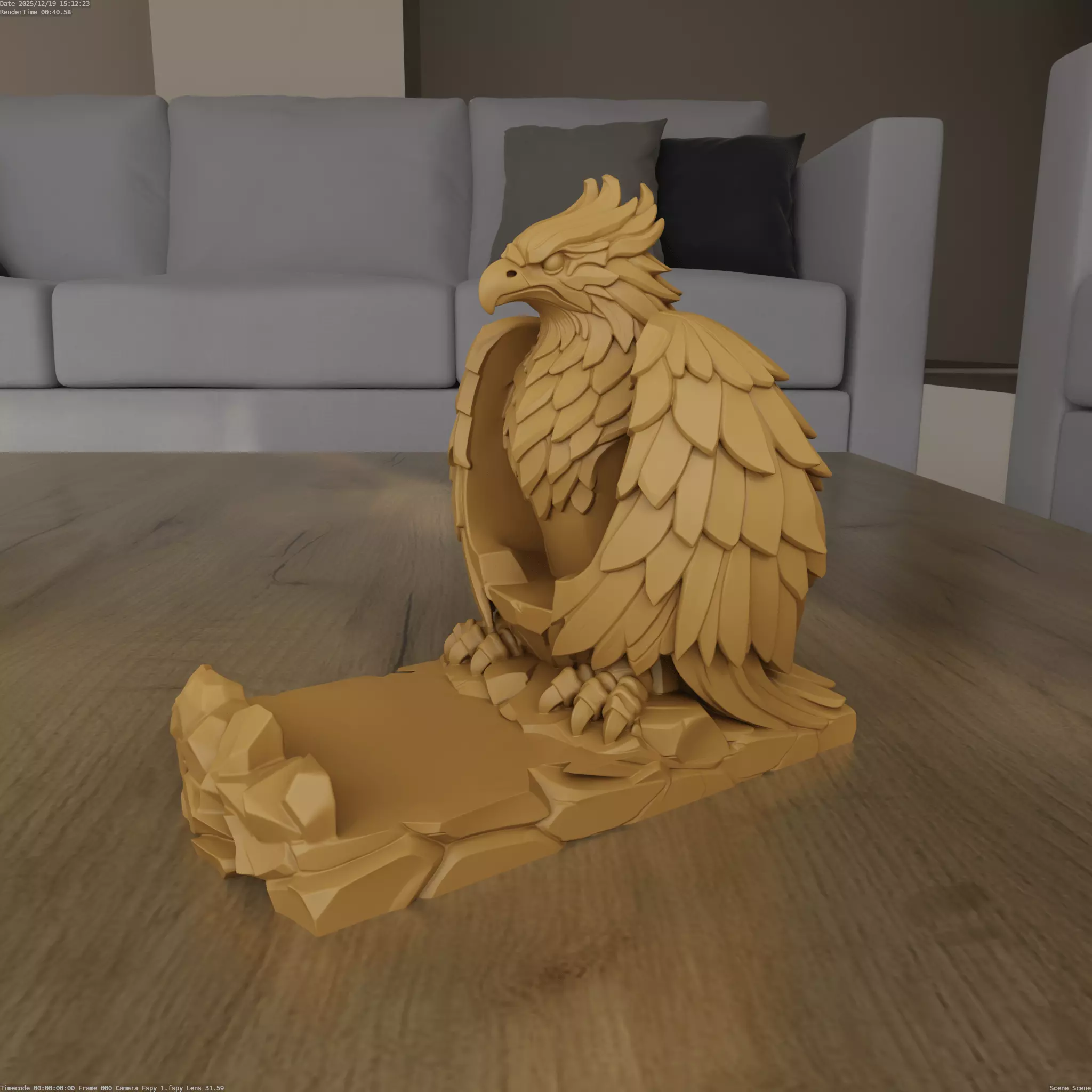 Design ConceptThe Elegant Phoenix Phone Stand draws inspiration from the majestic phoenix, symbolizing rebirth and grace. Its intricate feather detailing and elegant pose make it not only a functional stand but also a decorative piece.