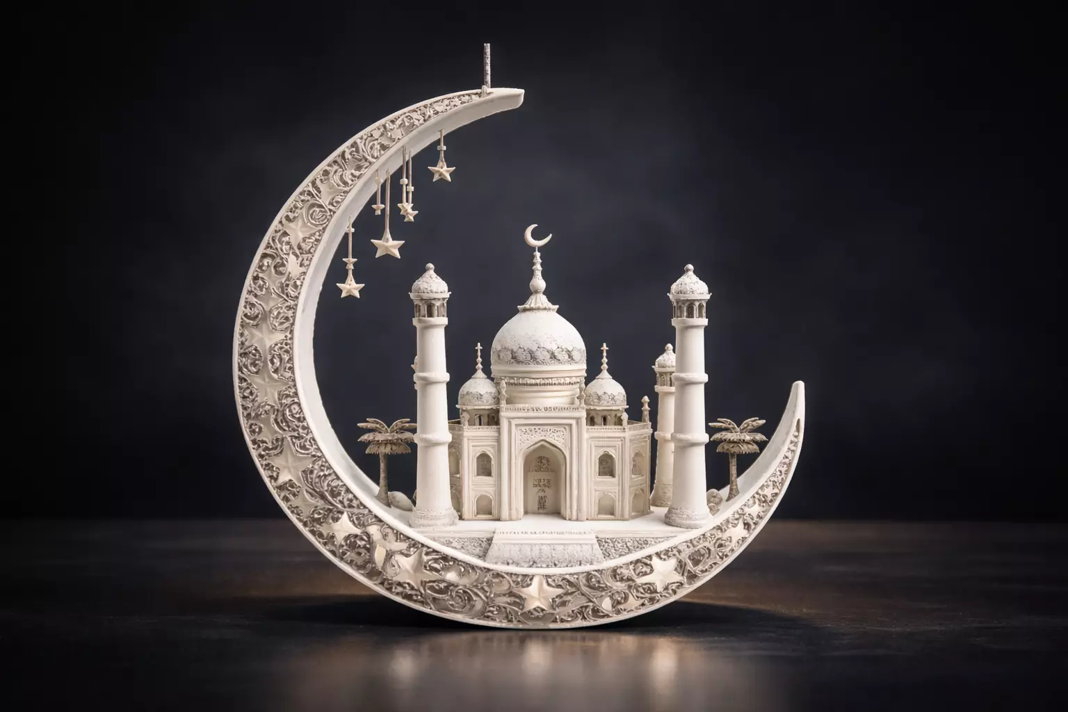 Ramadan decoration , Eid Mubarak , Islamic art , crescent moon , mosque model , Muslim gift , home decor , religious sculpture , Taj Mahal , arabesque pattern , middle eastern , Iftar table , prayer room , spiritual decor , geometric art , architectural model , holiday ornament , Eid al Fitr , detailed miniature , desk accessory