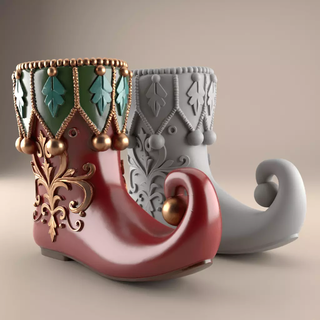 Printing RecommendationsWhen 3D printing the Elf Boot Planter, use PLA filament with a layer height of 0.1-0.2mm to retain detail. Opt for a higher infill rate if using as a planter to ensure strength. Consider using dual extrusion for multicolor printing to achieve the enriched colors shown in the design.