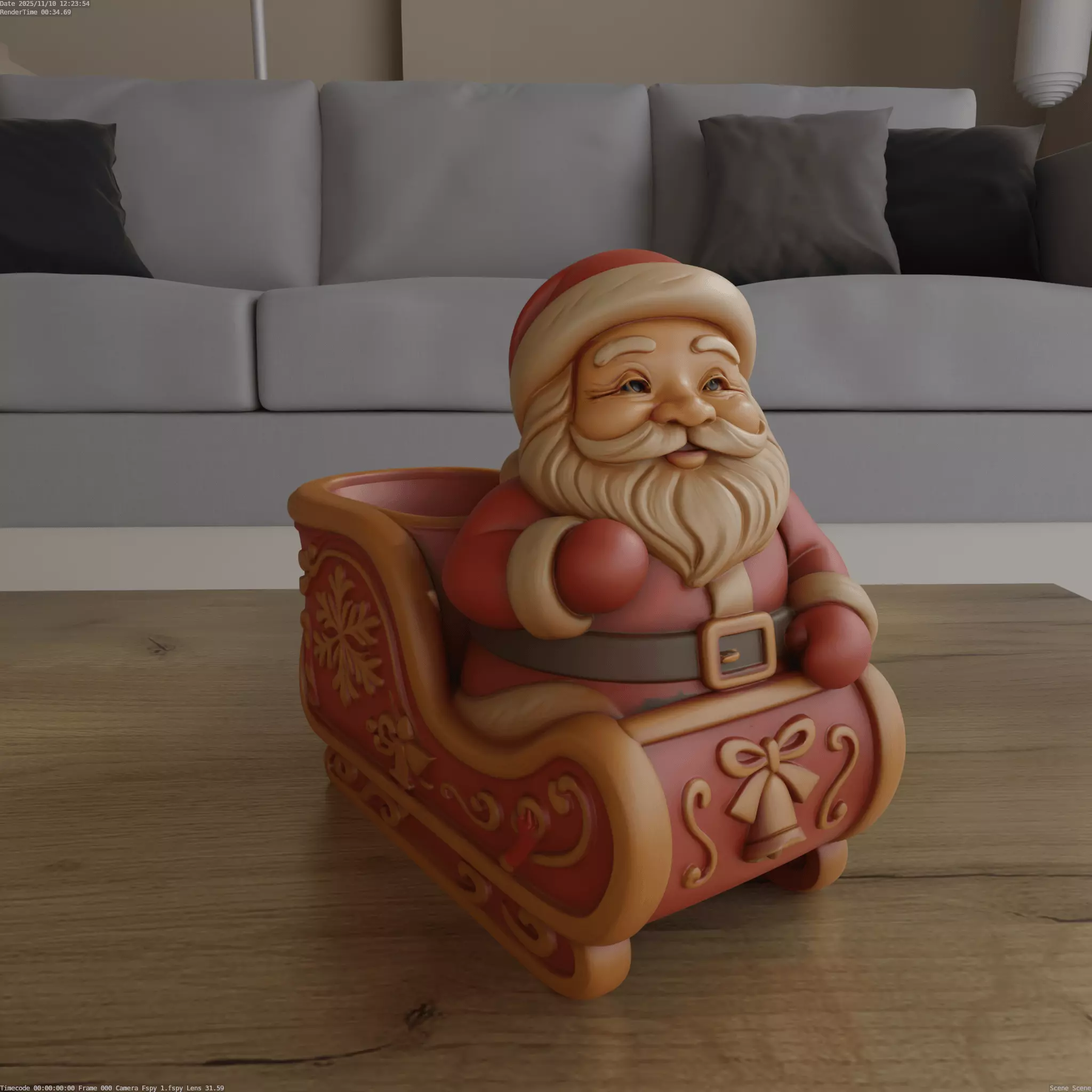 Design ConceptThe Festive Santa Sleigh Planter is designed to bring holiday cheer into your home or garden. With intricate details that capture the joyful essence of Santa and his iconic sleigh, this model serves both a decorative and functional role, making it perfect for the festive season.