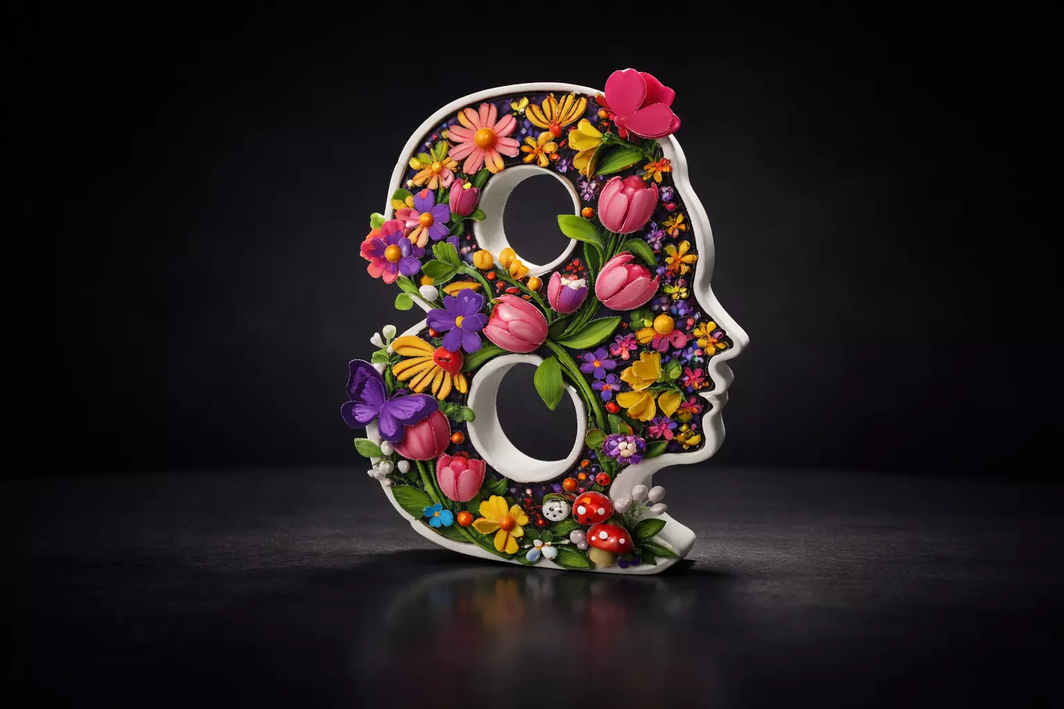 Celebrate strength, beauty, and femininity with this unique 3D printed floral number 8 woman silhouette, specially designed for International Women’s Day on March 8. The number 8 symbolizes infinity, empowerment, and resilience, while the elegant female profile is surrounded by vibrant flowers, butterflies, and nature-inspired details that represent growth, creativity, and inner power.This decorative piece makes a meaningful gift for women, mothers, sisters, friends, teachers, coworkers, or anyone who inspires you. Perfect as a desk ornament, shelf display, home décor accent, or office centerpiece, it adds a joyful and empowering touch to any space. The colorful floral design stands out beautifully and makes it an eye-catching statement for Women’s Day celebrations, spring décor, or year-round inspiration.Each piece is carefully crafted with attention to detail, making it a thoughtful keepsake and a symbol of appreciation for women’s achievements and strength. Ideal for gifting, decorating events, or personal inspiration, this design celebrates femininity, equality, and confidence in a modern artistic way.