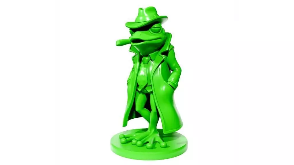 This model features a comically stylized frog dressed as a 1920s gangster, complete with a suit, trench coat, and hat. The whimsical character design is intended to be humorous and eye-catching.