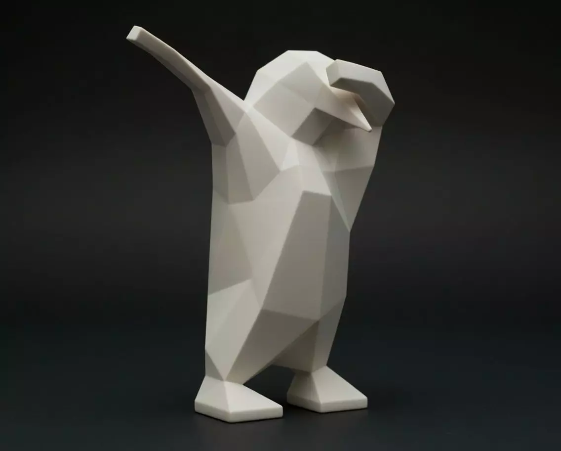 Geometric Low-Poly Penguin Statue dabbing 3D print model