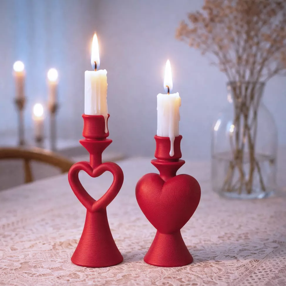 Light up your love with this elegant 3D printable heart-shaped candlestick holder set!