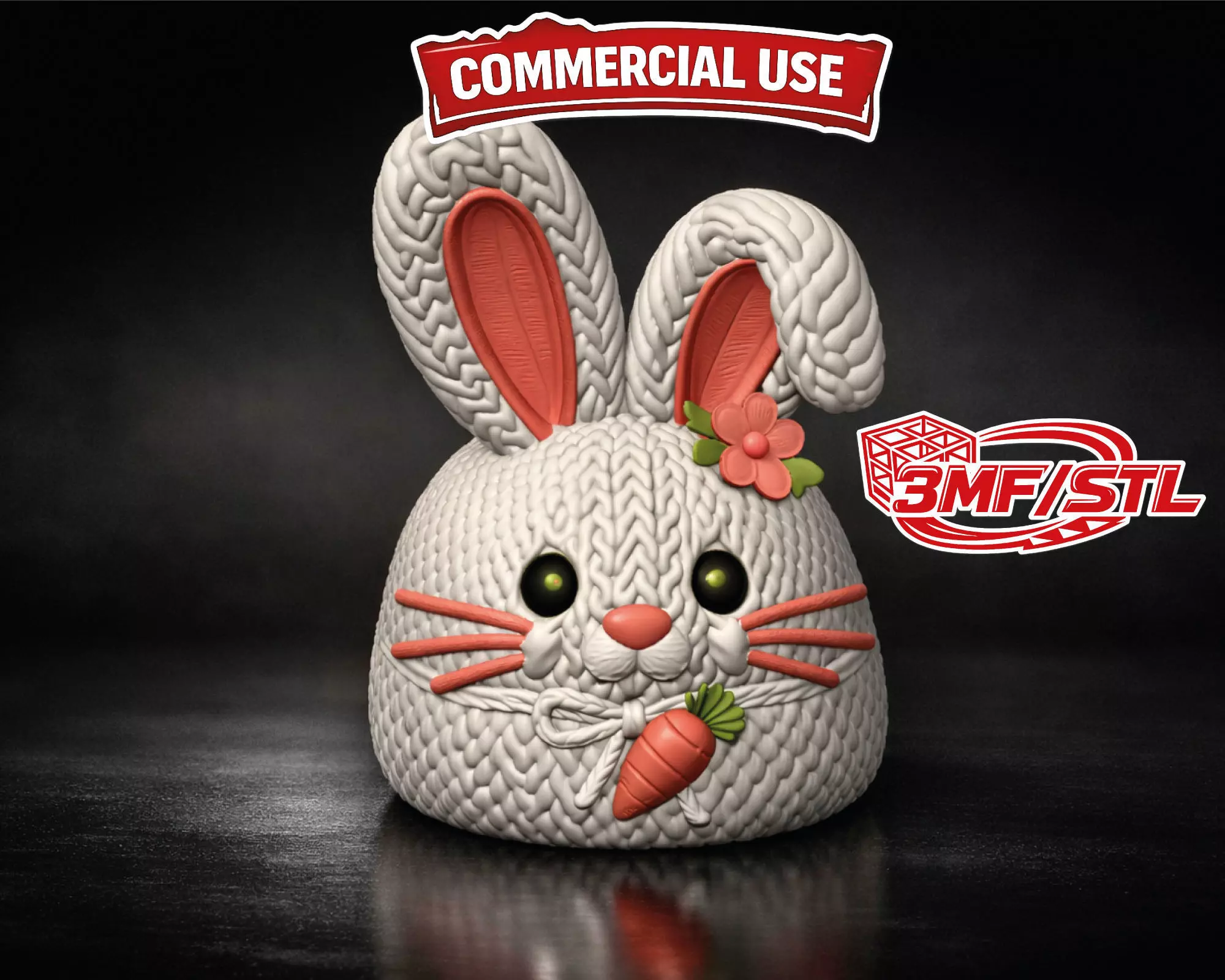 The model is carefully designed for clean, high-quality 3D printing and works beautifully as a multi color 3MF file for AMS, MMU, or other multi material systems. Each color element — including the inner ears, flower, carrot, whiskers, nose, and eyes — is separated for easy color assignment. A single color STL version is also included for those who prefer manual painting or single filament printing.