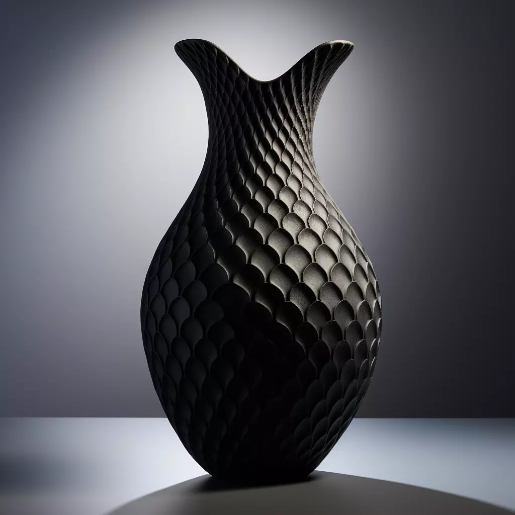 The Lange Vase is more than just a vase—it's a statement of art and elegance, designed to captivate and elevate any interior space. Its flowing, scale-like texture is reminiscent of natural forms, drawing inspiration from marine elements or mythical creatures, giving it a distinctive, almost ethereal appeal. This intricate pattern creates a fascinating interplay between light and shadow, emphasizing the vase’s contours and adding depth to its bold, dramatic presence.