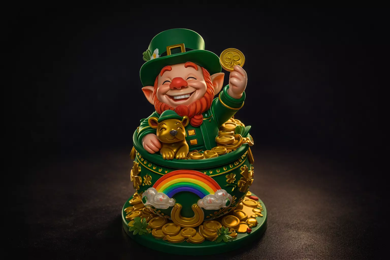 Bring the magic of St Patrick’s Day to life with this charming Lucky Leprechaun 3D print! This festive figurine features a joyful leprechaun sitting in his pot of gold, holding a shiny coin for good fortune. Surrounded by golden coins, bright shamrocks, and a colorful rainbow, this delightful design captures the spirit of Irish luck and celebration. Perfect for decorating your home, office, party table, or seasonal display, this cheerful character adds warmth, charm, and a touch of whimsy wherever it is placed.Carefully designed for smooth, high-quality 3D printing, this model showcases fun details like the leprechaun’s classic green outfit, lucky clovers, and a magical pot overflowing with treasure. It makes a wonderful gift for St Patrick’s Day lovers, collectors of holiday décor, or anyone who enjoys unique and festive creations. Whether used as a centerpiece, shelf decoration, or lucky charm, this leprechaun is sure to bring smiles and a bit of Irish fortune to your celebration.This design is ideal for hobbyists, decorators, and seasonal sellers looking to create eye-catching holiday pieces. Celebrate luck, joy, and Irish tradition with this playful and vibrant St Patrick’s Day decoration that stands out in any festive setting.