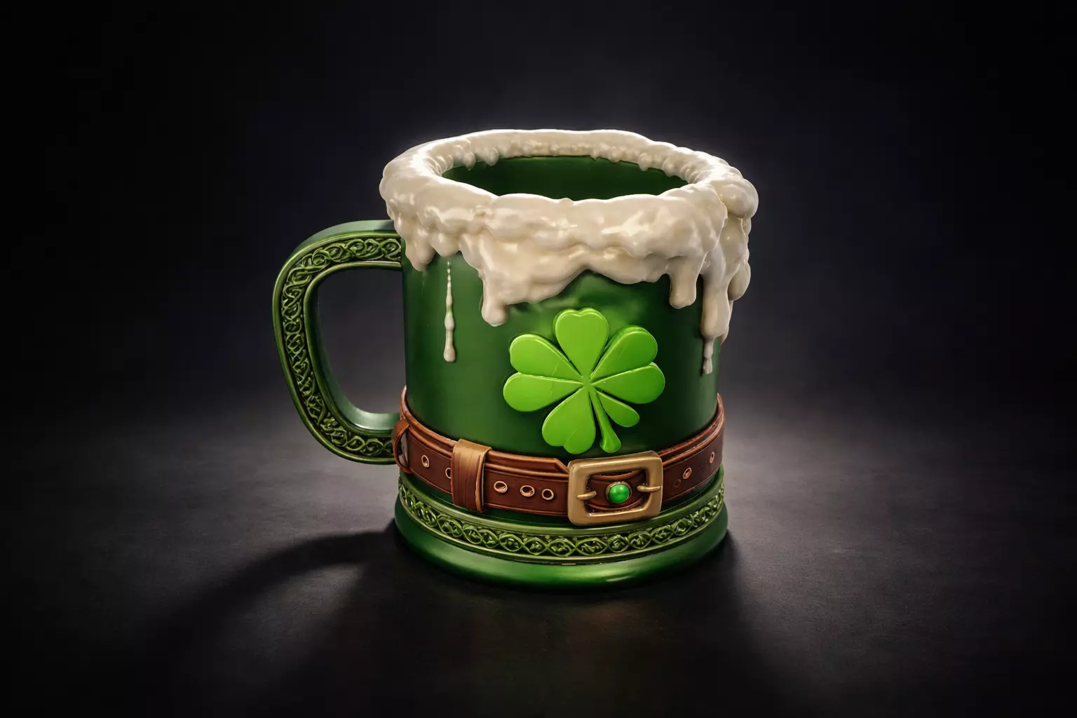 Celebrate the spirit of St Patrick’s Day with this charming Lucky Shamrock Mug, inspired by classic Irish cheer and festive traditions. Designed with a bold green finish, raised lucky clover emblem, and decorative belt detail, this eye-catching mug brings playful holiday vibes to any space. The foamy top effect gives it a fun, authentic pub-style look, making it perfect as seasonal decor, party centerpiece, or collectible display piece. Whether you love Irish culture, lucky symbols, or festive decorations, this unique mug adds a magical touch of green to your celebration.Crafted with attention to detail, the design highlights smooth curves, ornamental textures, and a cheerful holiday theme that stands out on shelves, desks, or party tables. A wonderful gift idea for St Patrick’s Day lovers, collectors, or anyone who enjoys whimsical and festive decorations. Great for home decor, office displays, themed parties, and lucky charm collections, this mug symbolizes good fortune, joy, and Irish pride all in one delightful piece.