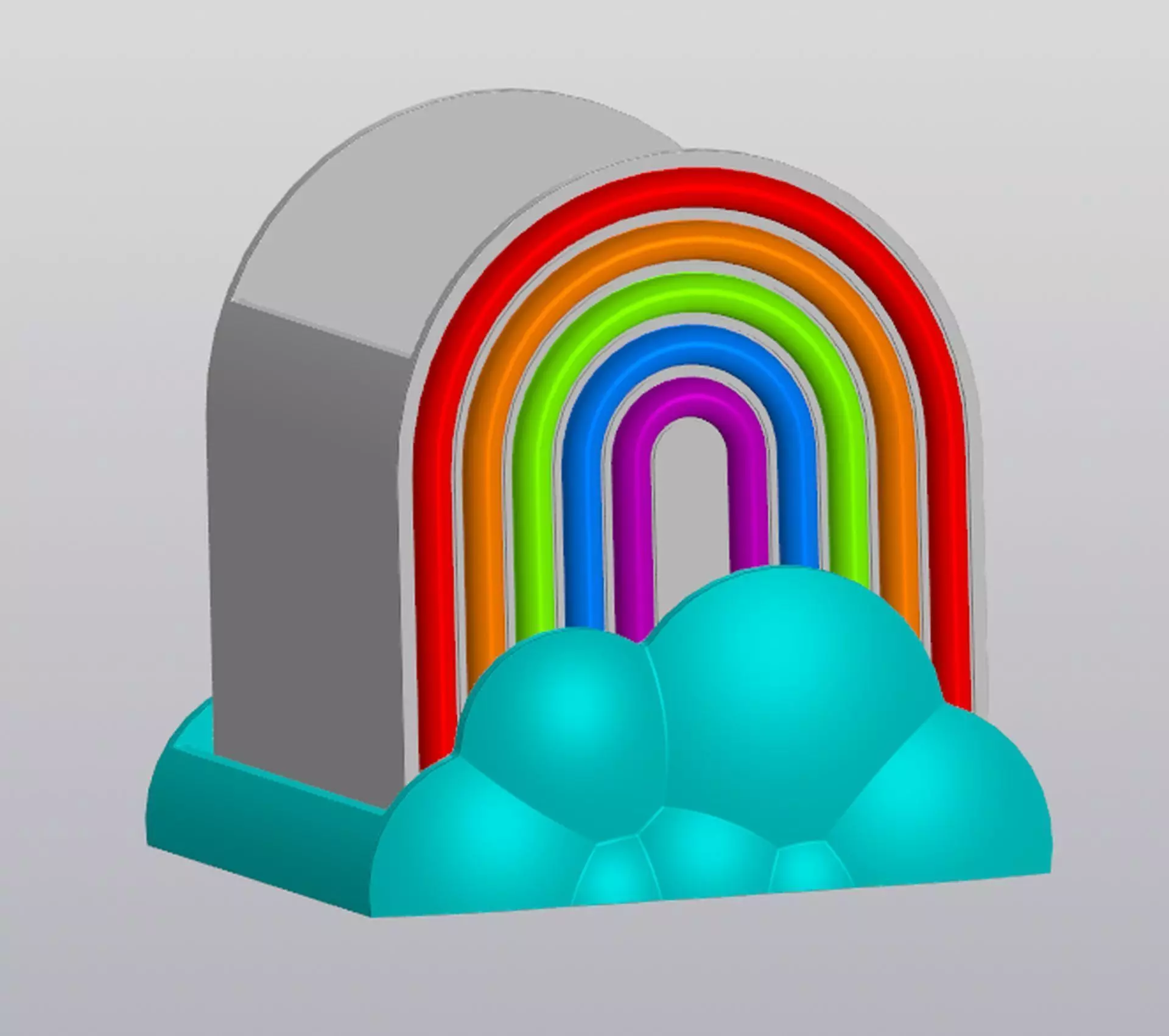 A pot with drainage holes and a tray. The archive contains 7 STL files: 3d model of a flowerpot, 3d model of a tray for a pot and 5 models rainbow patterns. Print 12 parts on a 3D printer: 1 item planter, 1 item tray (cloud), 2 items (part 2 in archive) red rainbow pattern, 2 items (part 3 in archive) orange rainbow pattern, 2 items (part 4 in archive) green rainbow pattern, 2 items (part 5 in archive) blue rainbow pattern, 2 items (part 6 in archive) violet rainbow pattern. Glue the rainbow patterns into the marked places on the planter as shown in the assembly photo. For gluing, use special glue for plastic.