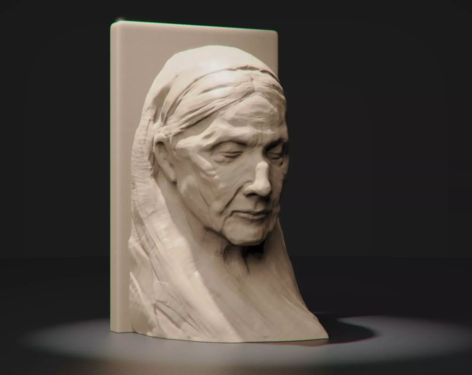 This bookend, adorned with the serene visage of an elderly woman, captures a timeless sense of wisdom and tranquility. Her eyes are gently closed, as if in deep reflection or peaceful slumber, embodying the quiet strength and grace that comes with age. Every line and contour of her face tells a story of a life lived fully, with experiences etched into her skin like the chapters of a cherished book. The folds of her headscarf frame her face tenderly, suggesting a life of humble resilience and enduring love. This bookend is not merely a functional object but a heartfelt tribute to the quiet, enduring wisdom of our elders, a guardian of the stories held within the pages it supports.