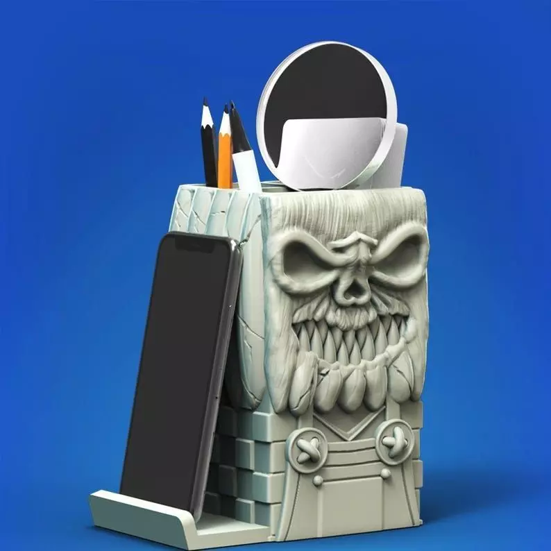 INCLUDES: 2 Versions . Scary Pumpkin Desk Organizer With Mobile holder and Without Mobile Holder STL Files.