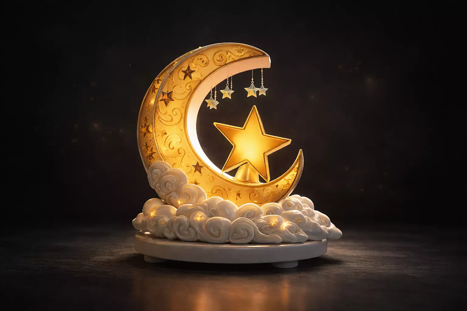 ramadan decoration, eid mubarak, islamic art, crescent moon, star and moon, muslim gift, home decor, religious ornament, holy month, iftar table, suhoor decor, cloud sculpture, night light, decorative figurine, arabian style, festive season, printable art, spiritual symbol, desktop ornament, celebration gift