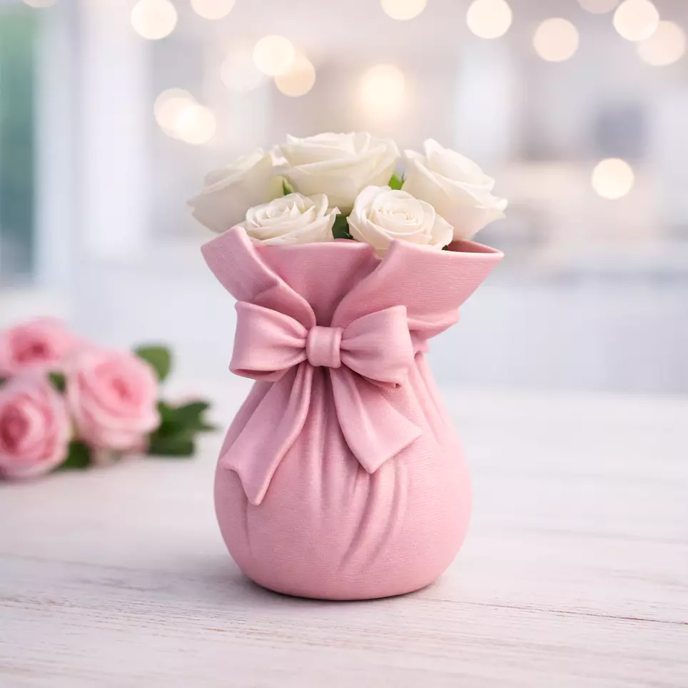 Add a touch of romance and elegance to your space with the Ribbon Bouquet Vase, a 3D printable flower bag vase wrapped in a graceful bow!