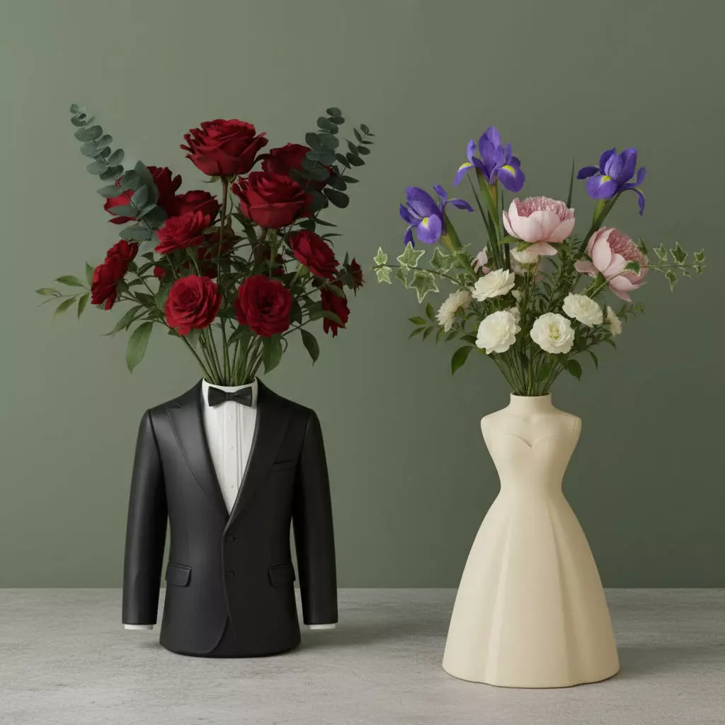 A refined and modern 3D printable vase duo inspired by a wedding couple.This decorative set embodies elegance and harmony through two artistic silhouettes that symbolize the bride and groom.
