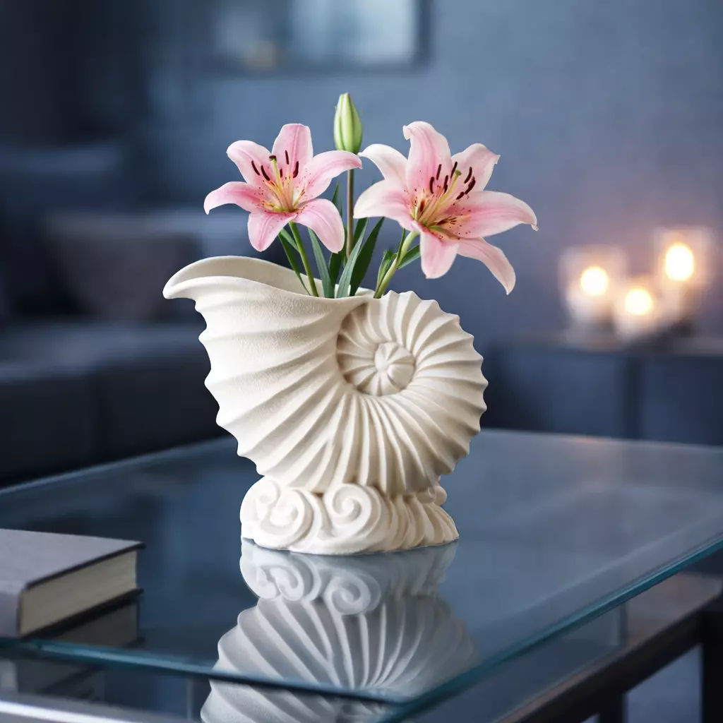 Bring the elegance of the ocean into your home with this stunning Shell Flower Vase, a 3D printable masterpiece inspired by the timeless beauty of the nautilus!
