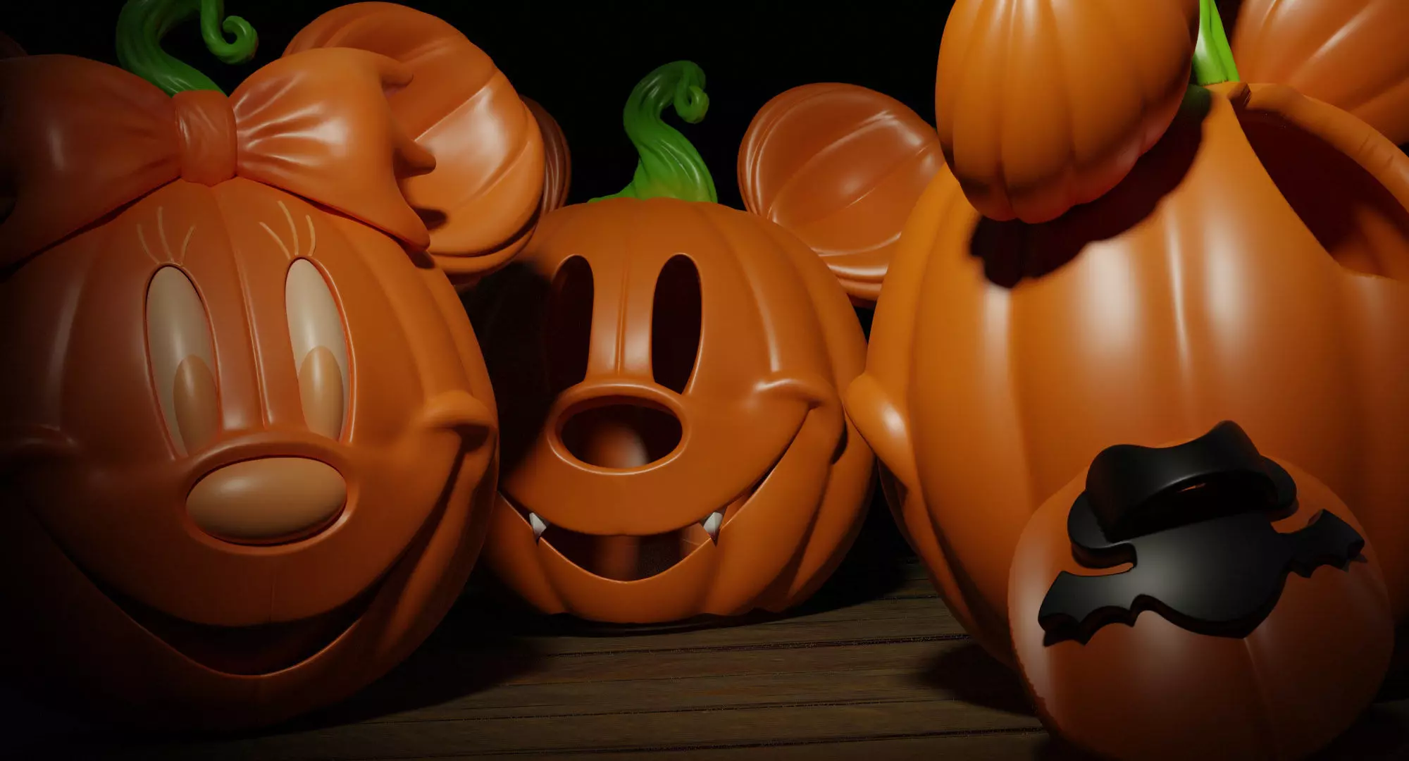 Spooky Cute Mickey & Minnie Mouse Pumpkins 3D Model