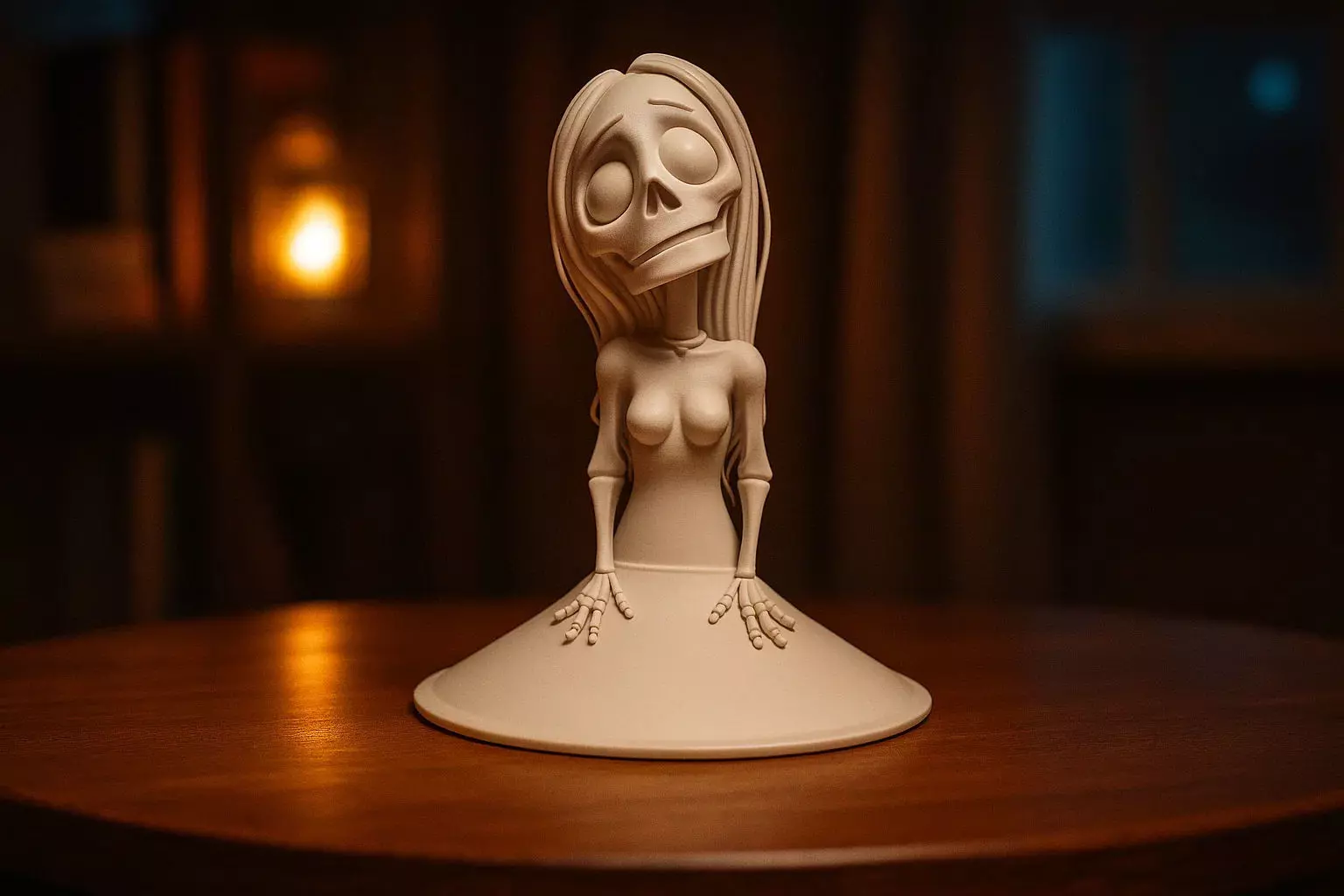 The spooky skeleton model features a stylized, whimsical skeletal figure reminiscent of Halloween themes. The exaggerated features give it a friendly yet eerie look, capturing the festive spirit.