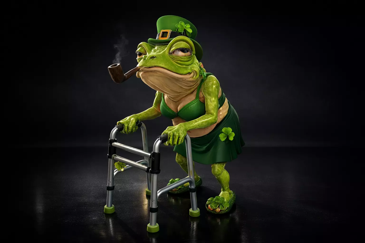 st patricks day decor , lucky frog figurine , shamrock frog , irish leprechaun frog , funny frog statue , st patrick decoration , lucky clover decor , whimsical frog gift , fantasy frog model , holiday frog decor , green frog figurine , collectible frog statue , quirky animal figurine , frog lady statue , festive irish decor , novelty frog gift , lucky charm decoration , saint patrick gift , themed holiday decor , printable frog model