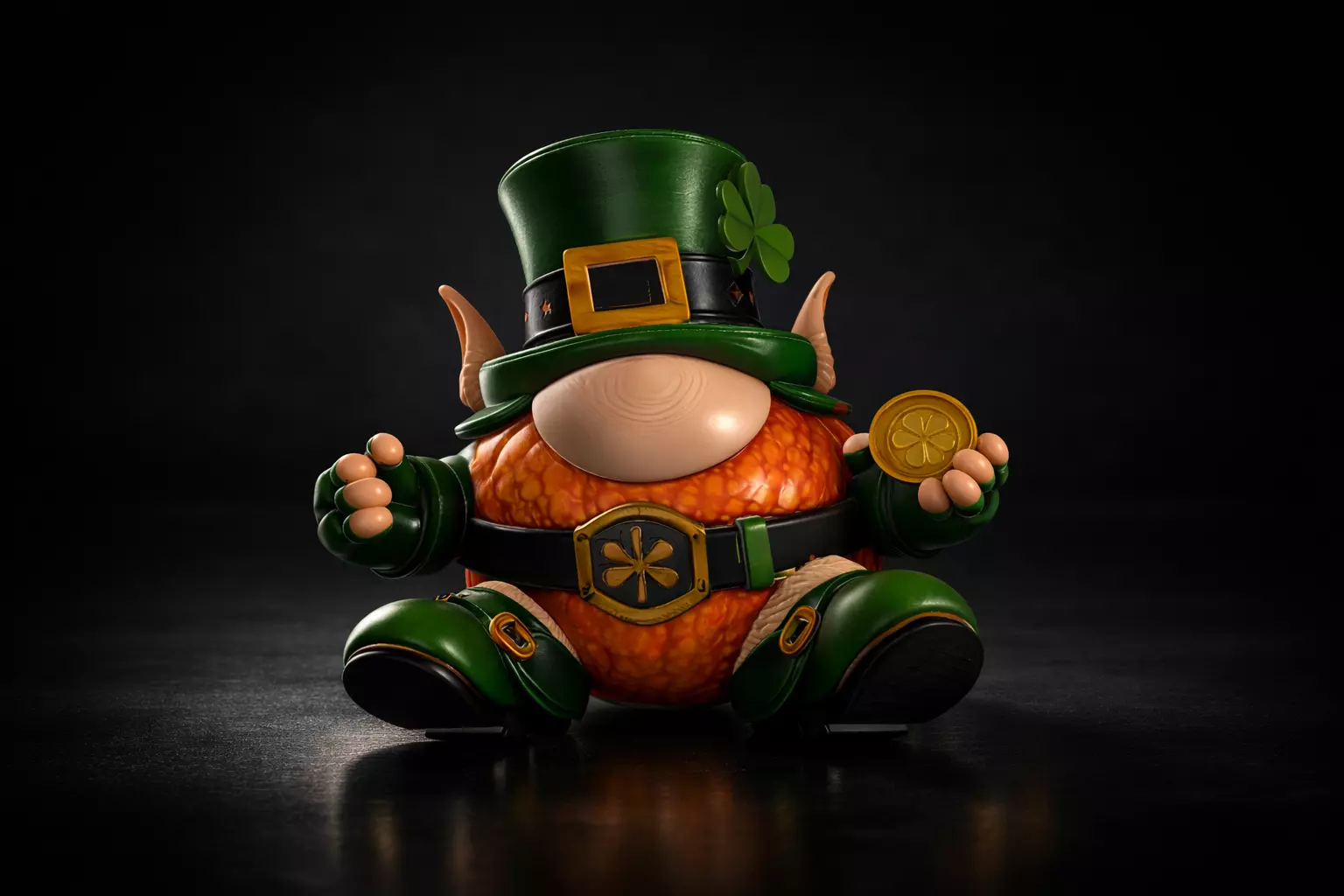 Bring a little luck to your space with this adorable St Patrick’s Day themed 3D printed leprechaun gnome! Featuring a tall green hat with a shamrock, pointy ears, and a “lucky coin” in hand, this chubby character makes the perfect desk buddy, shelf sitter, tiered tray accent, or party centerpiece. The detailed textures and bold shapes look amazing in person and photograph beautifully for seasonal displays.