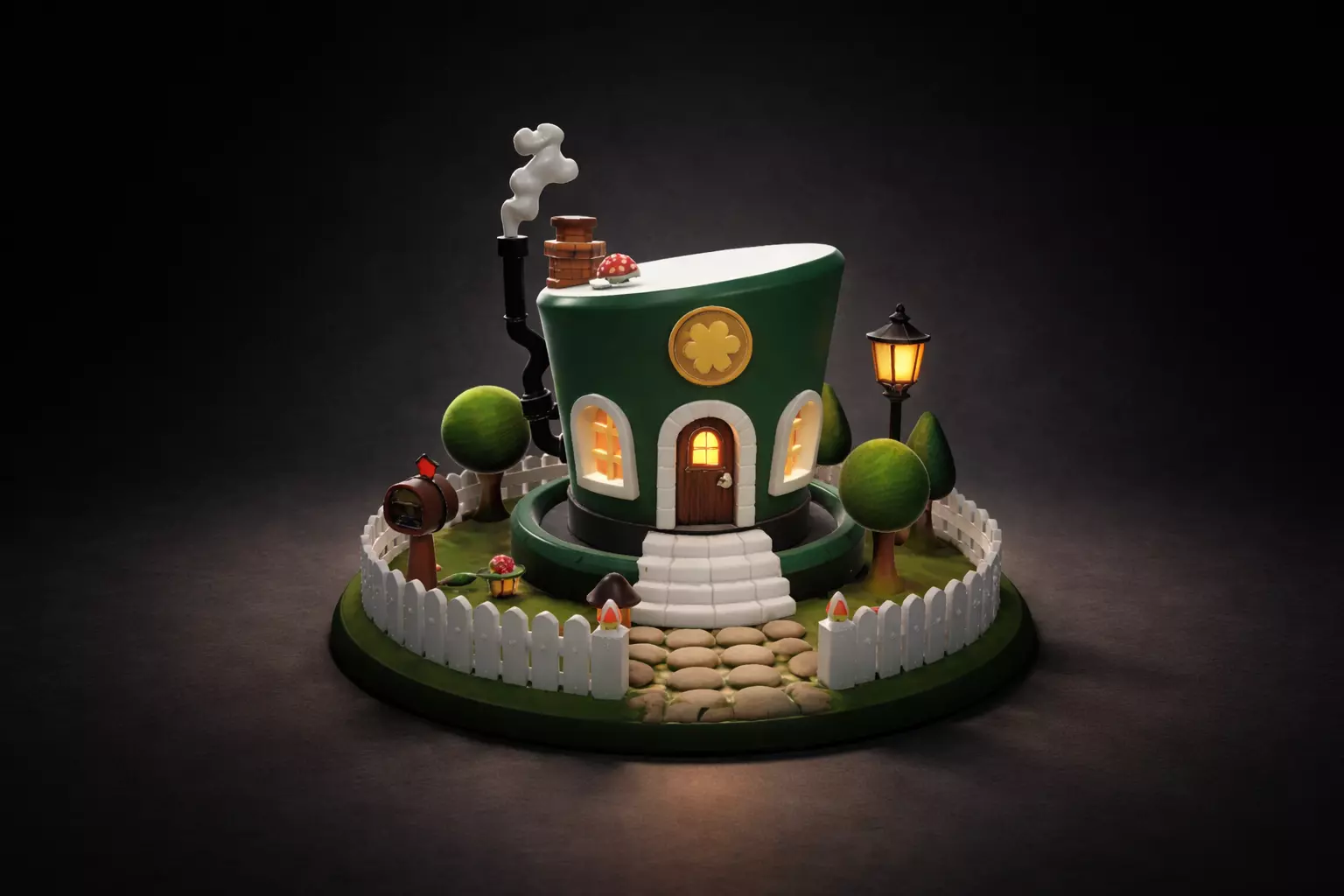 Each piece is 3D printed with crisp detail and made to stand out as a unique seasonal decoration or gift. The whimsical storybook look makes it fun for St Patrick’s Day parties, spring decorating, and collectors of miniature houses, fairy gardens, and holiday village displays.