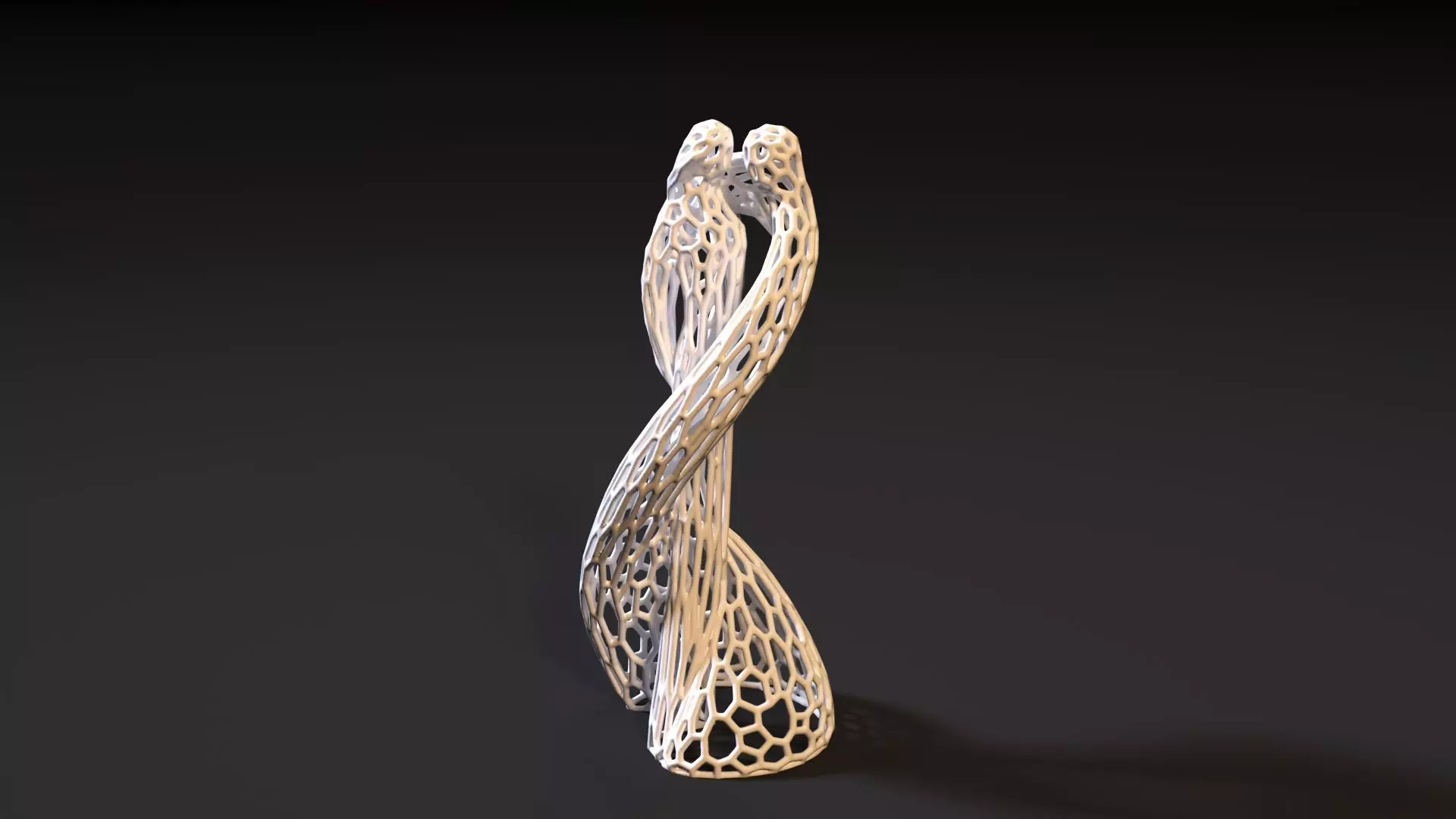 This elegant 3D model is a statuette of two connected figures symbolizing love and unity. Made in the modern Voronoi style, it creates the effect of a light geometric grid of polygonal elements, giving the work a modern and refined look.