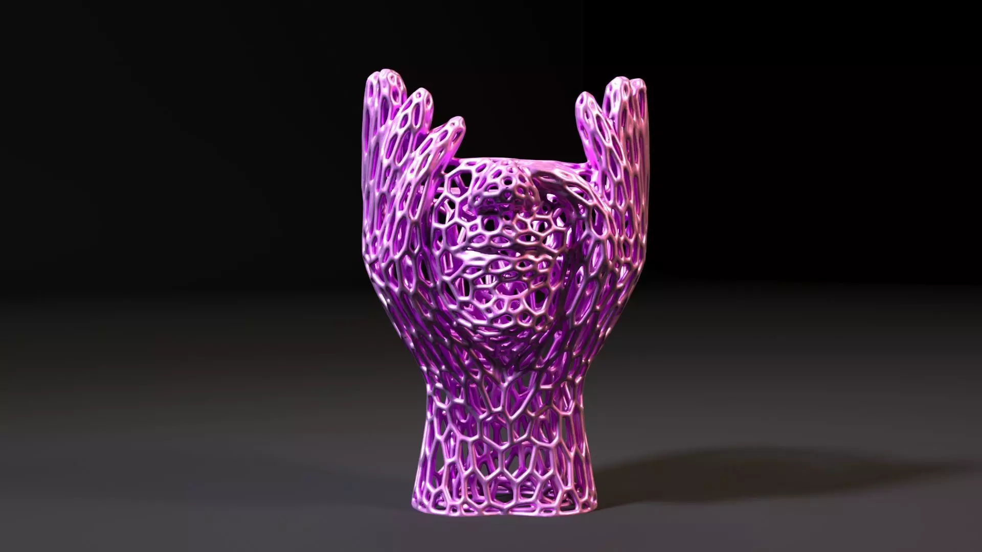 This exquisite decorative statuette is an image of complex hands, made in the modern Voronoi style. The model is ideal for interior use, and can also become an original lamp when adding a light source inside.