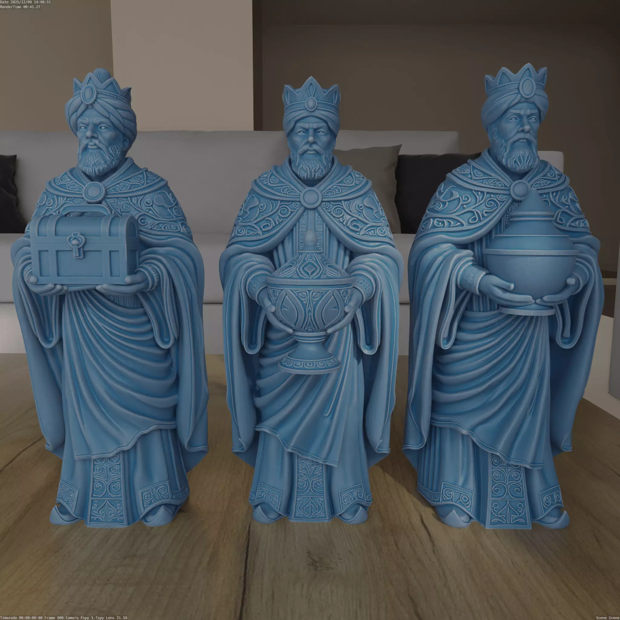 Add the three wise men to your nativity scene. This 3D printable STL model shows detailed kings with gifts. Perfect for Christmas displays and holiday decor.