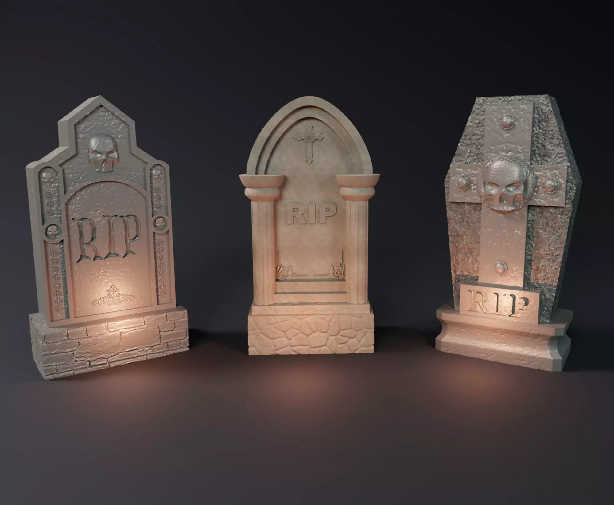 This pack contains 3 distinct and highly detailed tombstones.