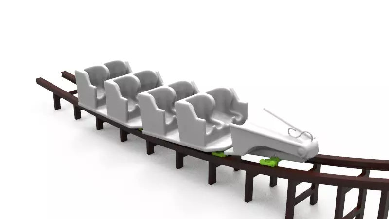 Train Assembly: Separate files for the front butterfly car, middle bogies, and wheel sets.