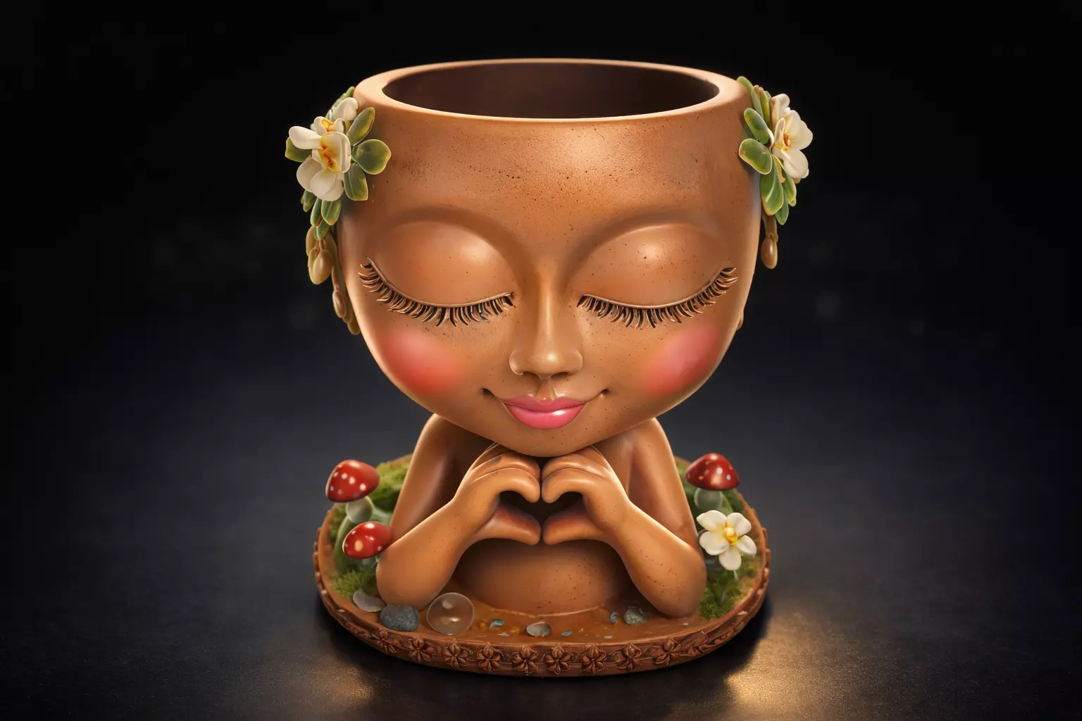 Celebrate love this Saint Valentine’s Day with this adorable heart-themed planter figurine, designed to melt hearts at first sight. This charming sculpture features a sweet girl with closed eyes and rosy cheeks, gently forming a heart with her hands, symbolizing love, care, and connection. The open top makes it perfect as a small planter, succulent holder, or decorative vase, blending romance with functionality.