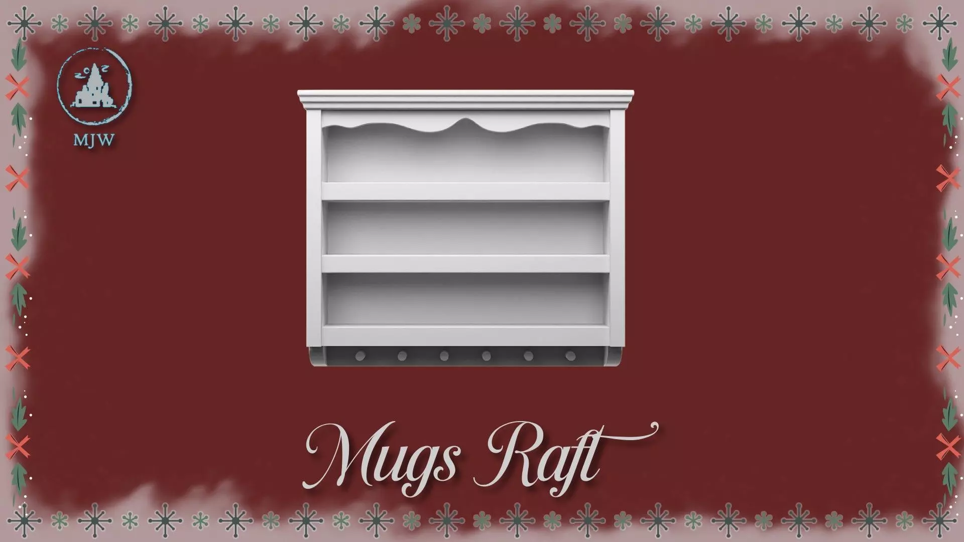 Mugs shown in the presentation images are not included with the rack. They are displayed only to illustrate the intended look and feel. Mugs are sold separately, except for the Snowman and Boot mugs, which are available for free.