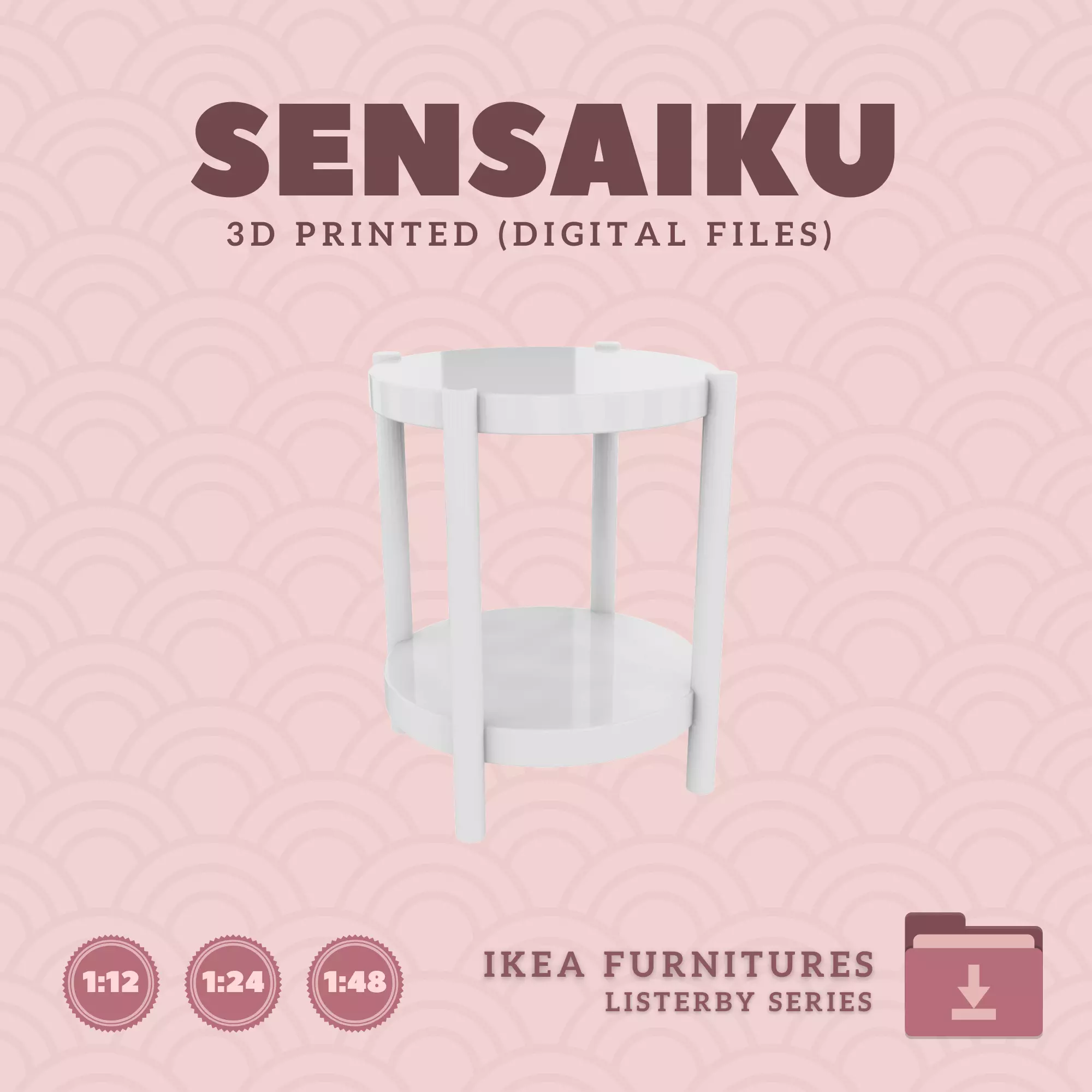 Name: 01. LISTERBY Side TableManufacturer - IKEARecommended Printer: Resin 3d PrinterSeries: Furniture Designers SeriesScale: 1:12, 1:24 & 1:483D Builder: Sensaiku