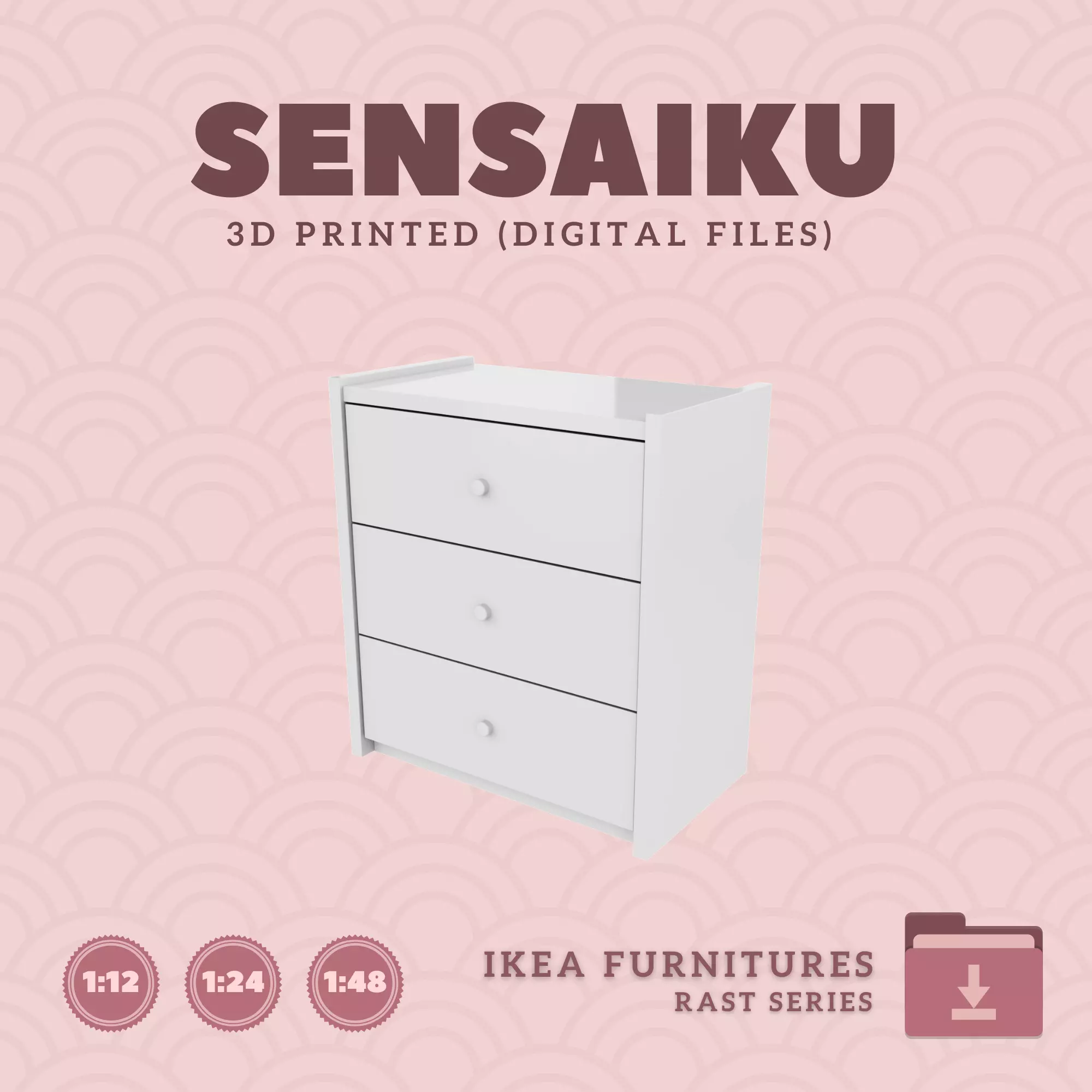 Name: 01. RAST 3 Drawer ChestManufacturer - IKEARecommended Printer: Resin 3d PrinterSeries: Furniture Designers SeriesScale: 1:12, 1:24 & 1:483D Builder: Sensaiku