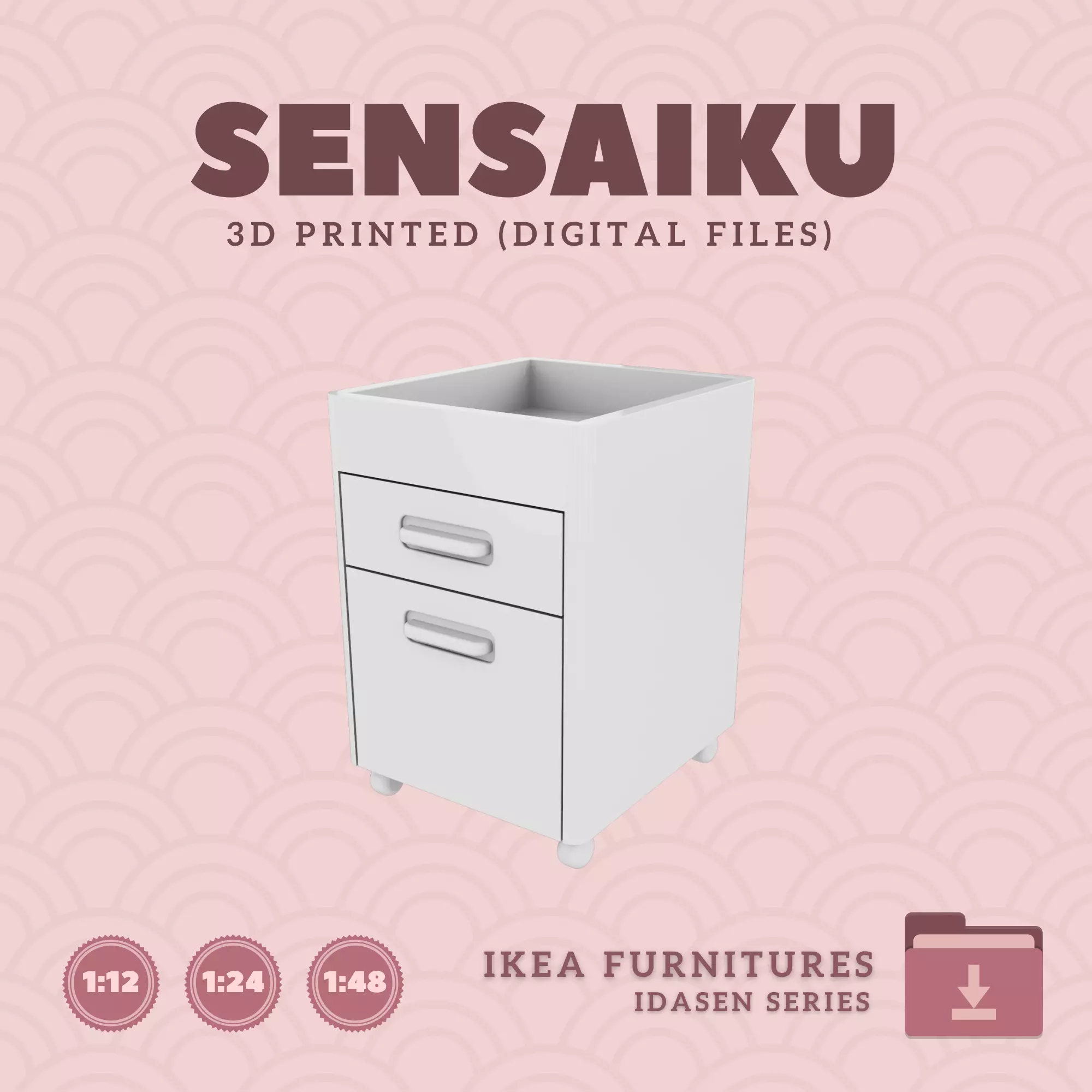 Name: 11. IDASEN Drawer Unit on CastersManufacturer - IKEARecommended Printer: Resin 3d PrinterSeries: Furniture Designers SeriesScale: 1:12, 1:24 & 1:483D Builder: Sensaiku