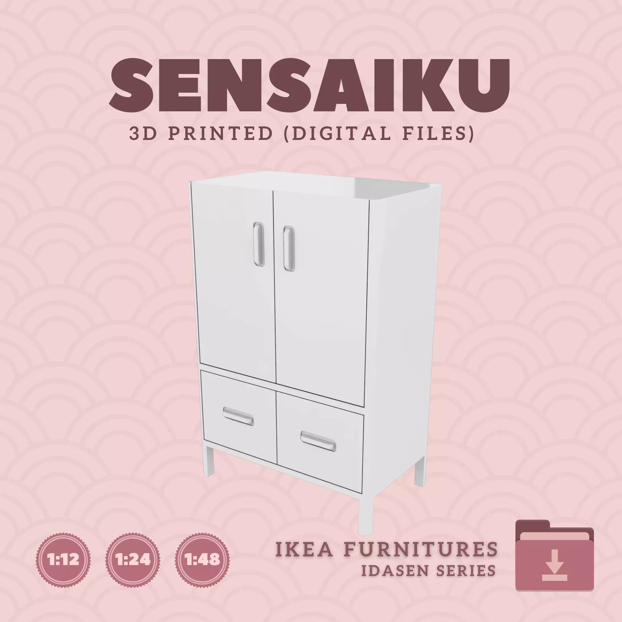 Name: 13. IDASEN Cabinet with Doors and DrawersManufacturer - IKEARecommended Printer: Resin 3d PrinterSeries: Furniture Designers SeriesScale: 1:12, 1:24 & 1:483D Builder: Sensaiku