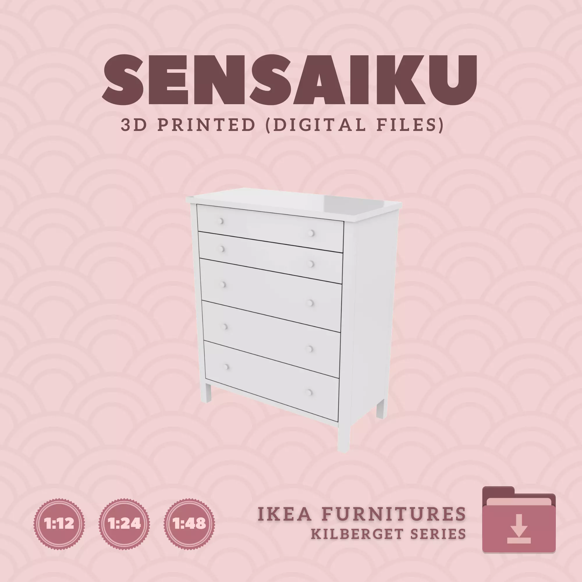 Name: 02. KILBERGET 5 Drawer ChestManufacturer - IKEARecommended Printer: Resin 3d PrinterSeries: Furniture Designers SeriesScale: 1:12, 1:24 & 1:483D Builder: Sensaiku
