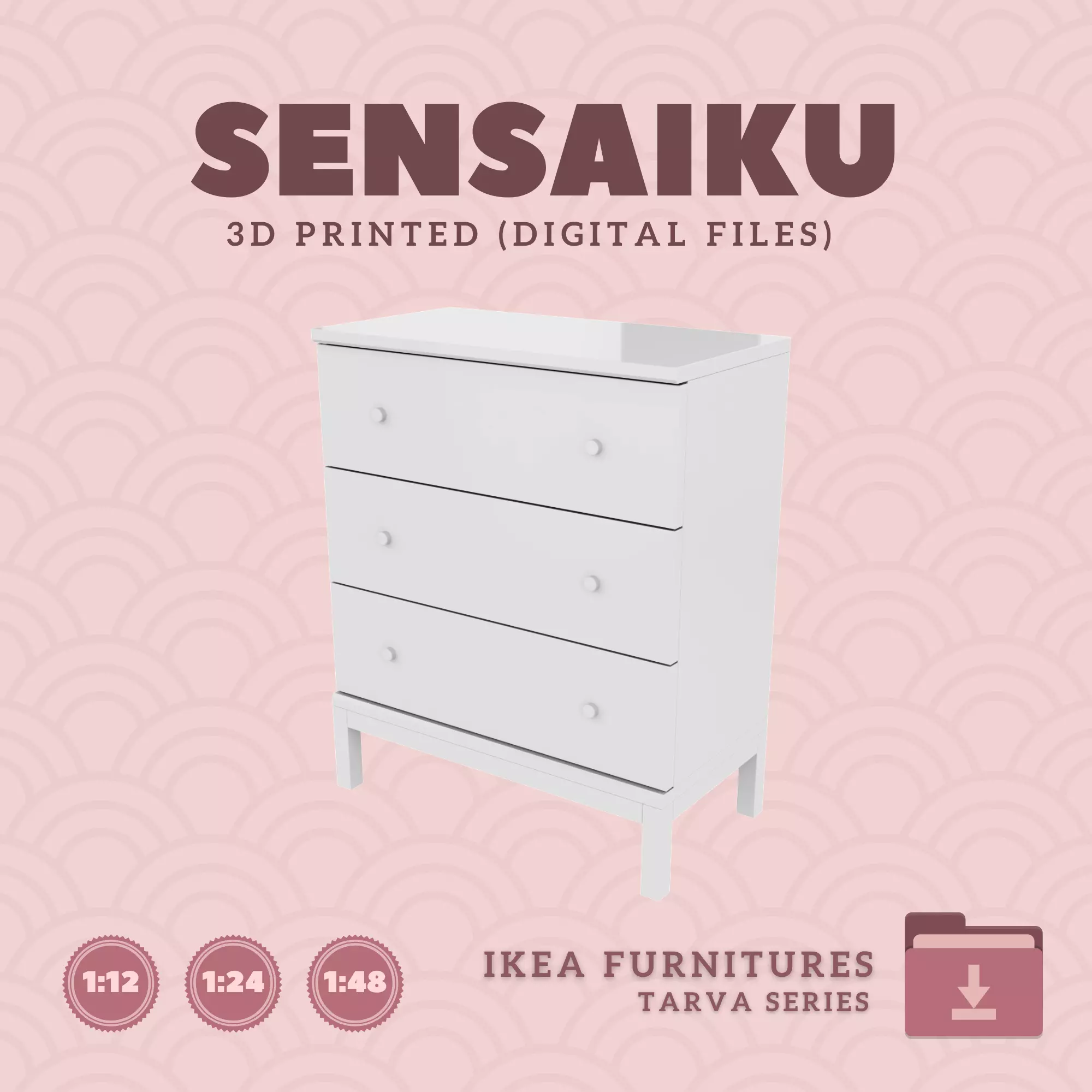 Name: 02. TARVA 3 Drawer ChestManufacturer - IKEARecommended Printer: Resin 3d PrinterSeries: Furniture Designers SeriesScale: 1:12, 1:24 & 1:483D Builder: Sensaiku