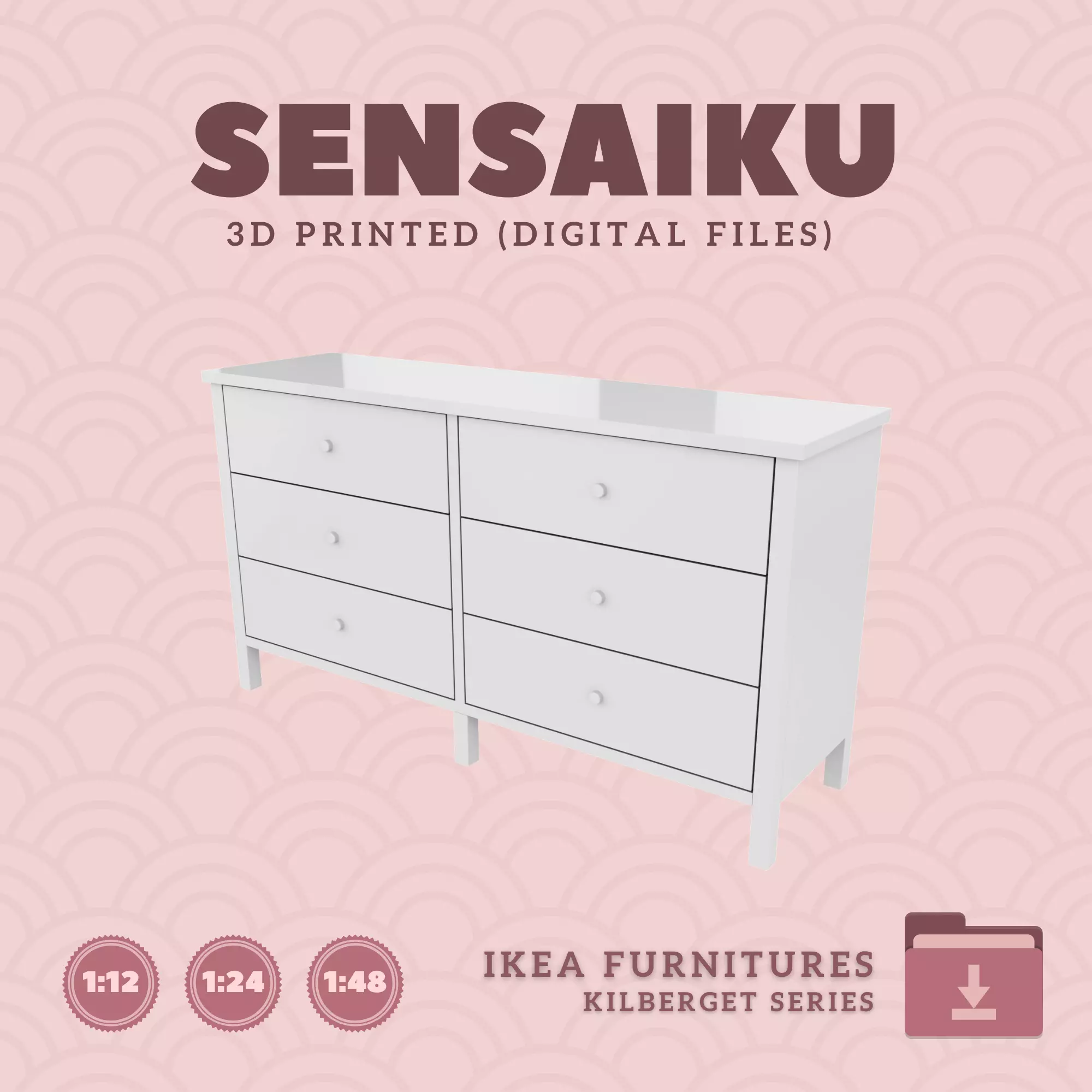 Name: 03. KILBERGET 6 Drawer ChestManufacturer - IKEARecommended Printer: Resin 3d PrinterSeries: Furniture Designers SeriesScale: 1:12, 1:24 & 1:483D Builder: Sensaiku