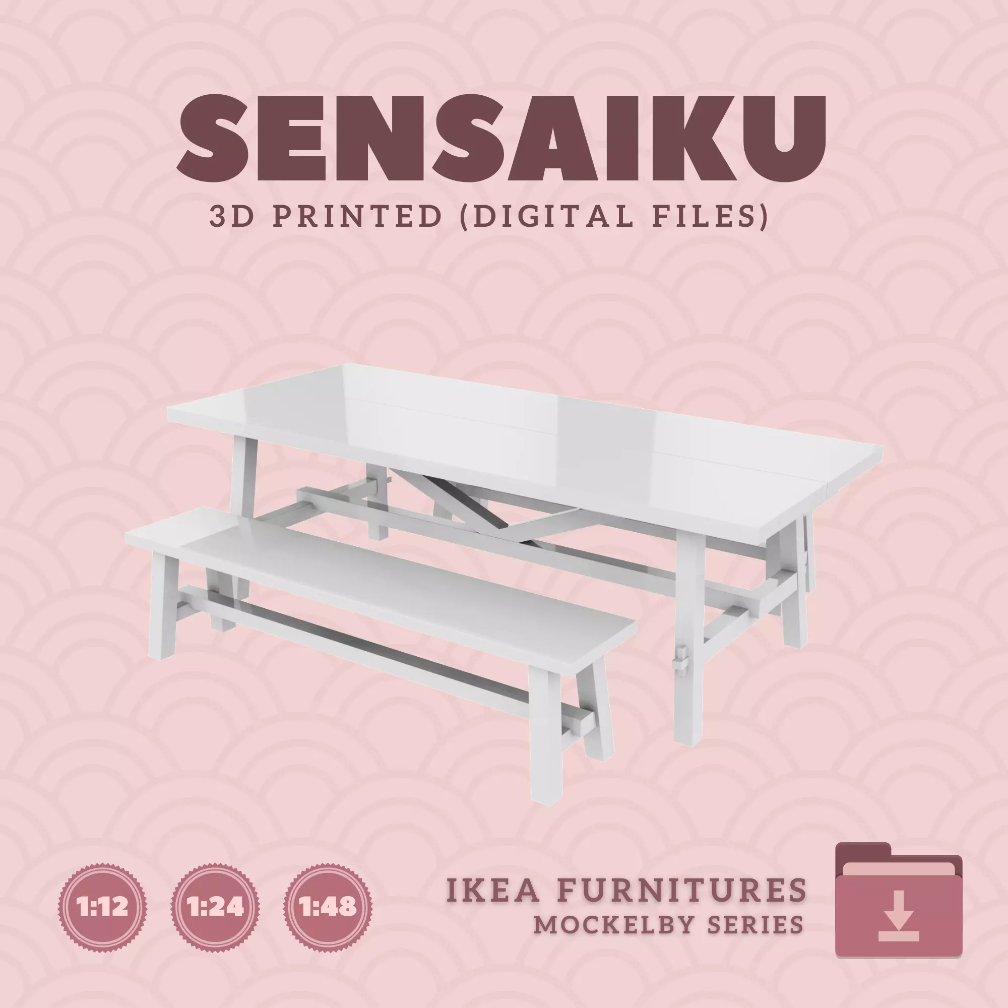 Name: 03. MOCKELBY Table 92 In and Bench 70 InManufacturer - IKEARecommended Printer: Resin 3d PrinterSeries: Furniture Designers SeriesScale: 1:12, 1:24 & 1:483D Builder: Sensaiku