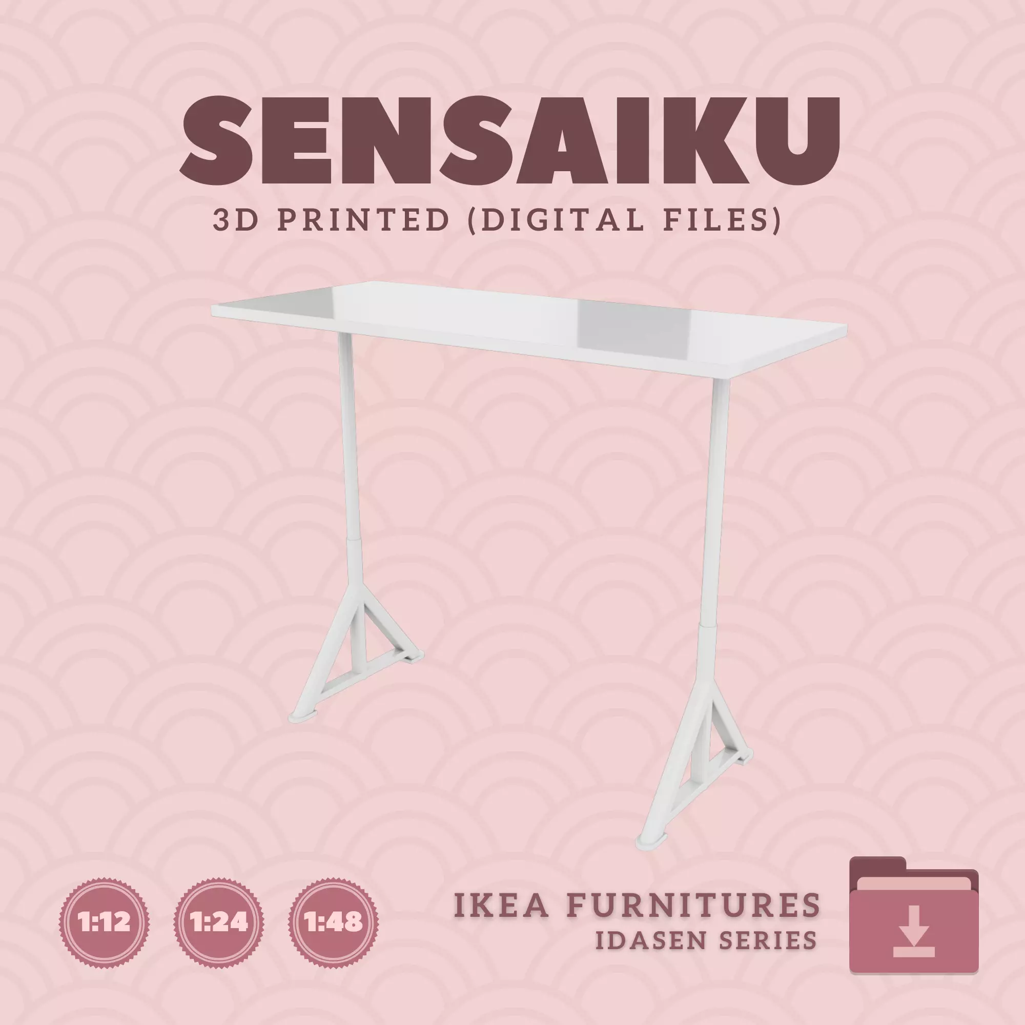 Name: 07. IDASEN Desk 63 L 50 HManufacturer - IKEARecommended Printer: Resin 3d PrinterSeries: Furniture Designers SeriesScale: 1:12, 1:24 & 1:483D Builder: Sensaiku