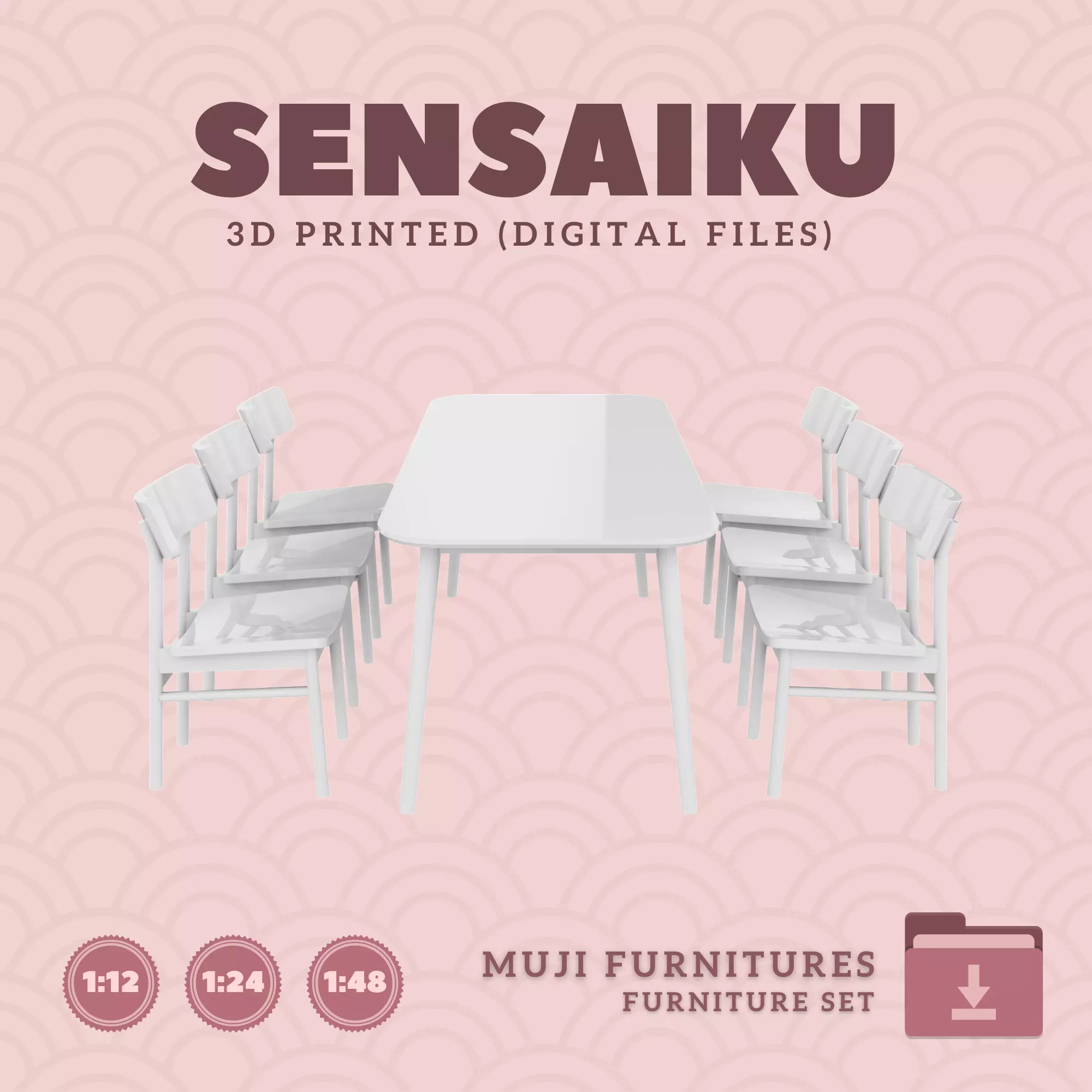 Name: 09. Dining Table 70 In and Chair Set V9Manufacturer - MUJIRecommended Printer: Resin 3d PrinterSeries: Furniture Designers SeriesScale: 1:12, 1:24 & 1:483D Builder: Sensaiku