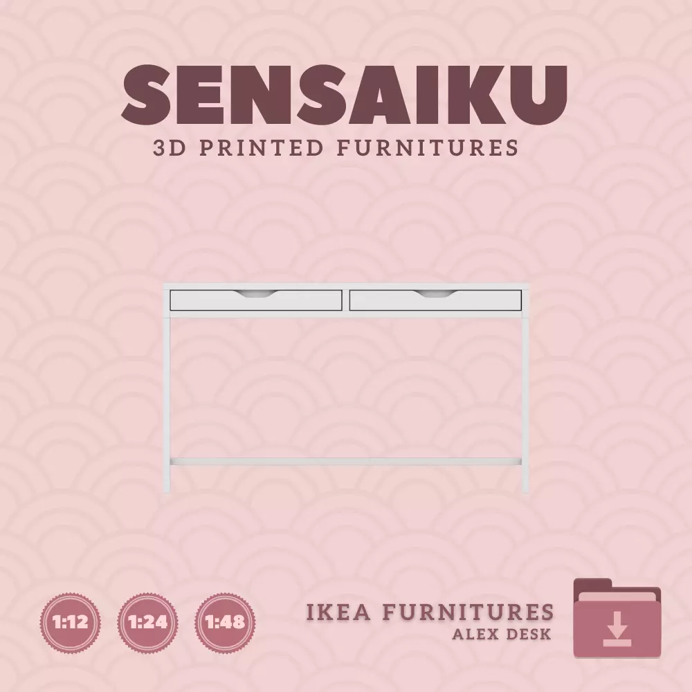 Bring timeless design to your miniature world with the ALEX Desk by IKEA, now available as a meticulously detailed 3D print file from Sensaiku. This file has been expertly designed for 3D printing enthusiasts, scaled perfectly in 1:12, 1:24, and 1:48, catering to dollhouse collectors, diorama creators, and modern miniature furniture fans. With its iconic clean lines and functional design, the ALEX Desk becomes a stunning addition to any small-scale space.