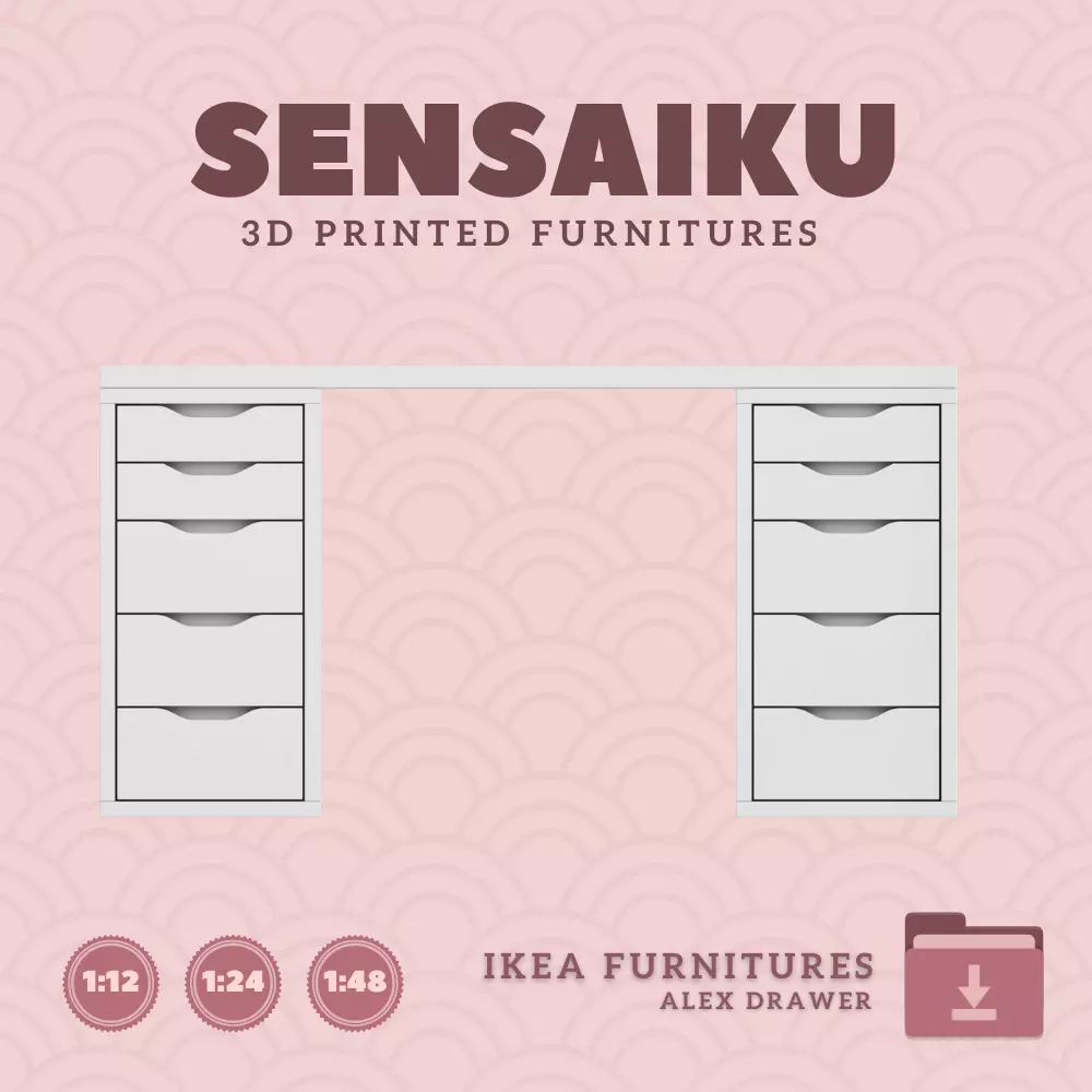 Name: 03. ALEX Desk with Drawers V2Manufacturer - IKEARecommended Printer: Resin 3d PrinterSeries: Furniture Designers SeriesScale: 1:12, 1:24 & 1:48
