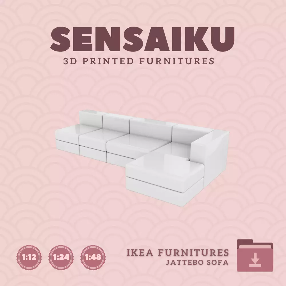 Name: 14. JATTEBO 4.5-seat Mod Sofa w ChaiseManufacturer - IKEARecommended Printer: Resin 3d PrinterSeries: Furniture Designers SeriesScale: 1:12, 1:24