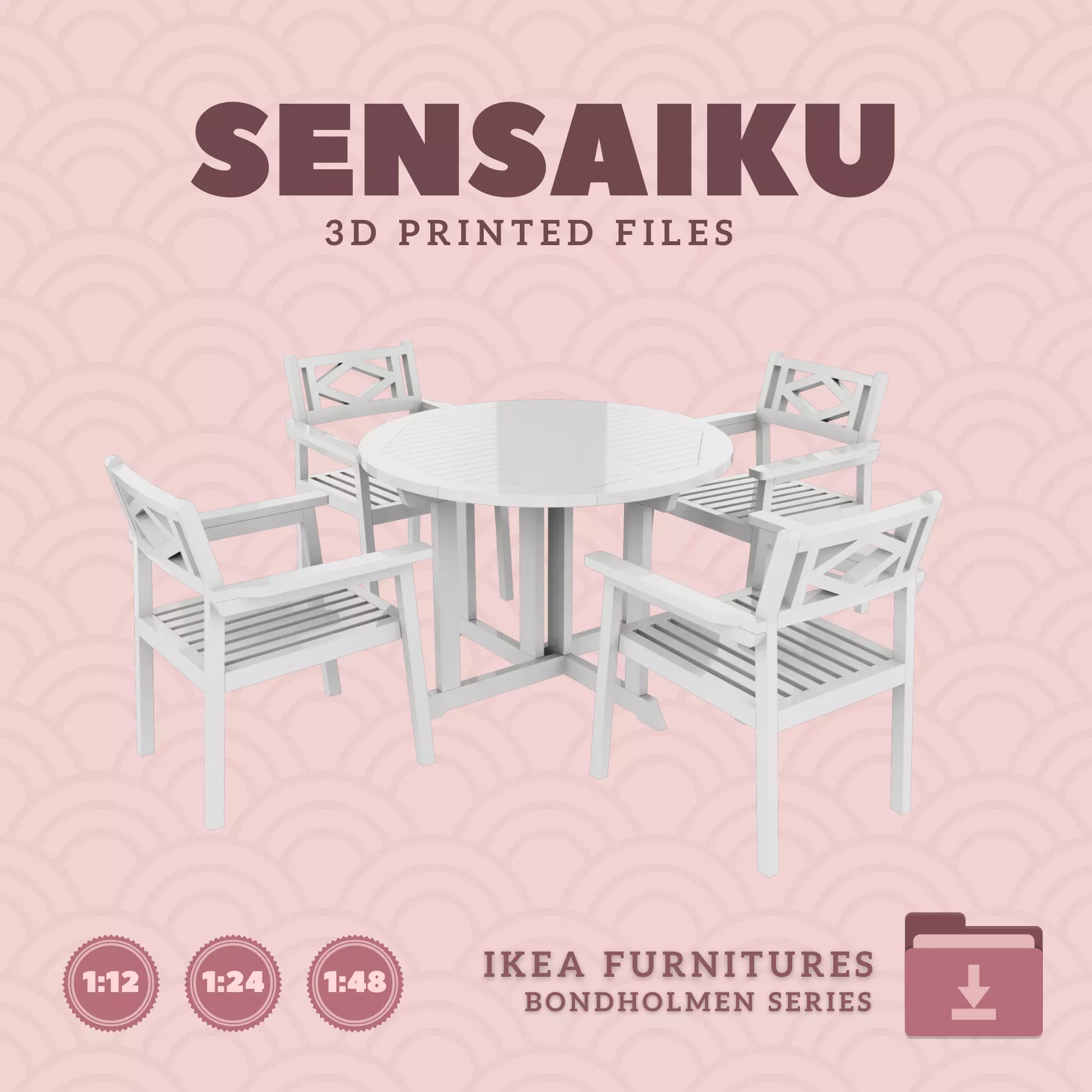 The BONDHOLMEN table and chairs set from IKEA captures the essence of outdoor relaxation and al fresco dining with its robust eucalyptus wood construction and timeless Scandinavian design. Perfect for patios, balconies, or gardens, the full-sized furniture exudes a classic, durable charm. Now, thanks to Sensaiku, this beloved IKEA design is available in a meticulously recreated miniature version ideal for hobbyists, collectors, and 3D printing enthusiasts.