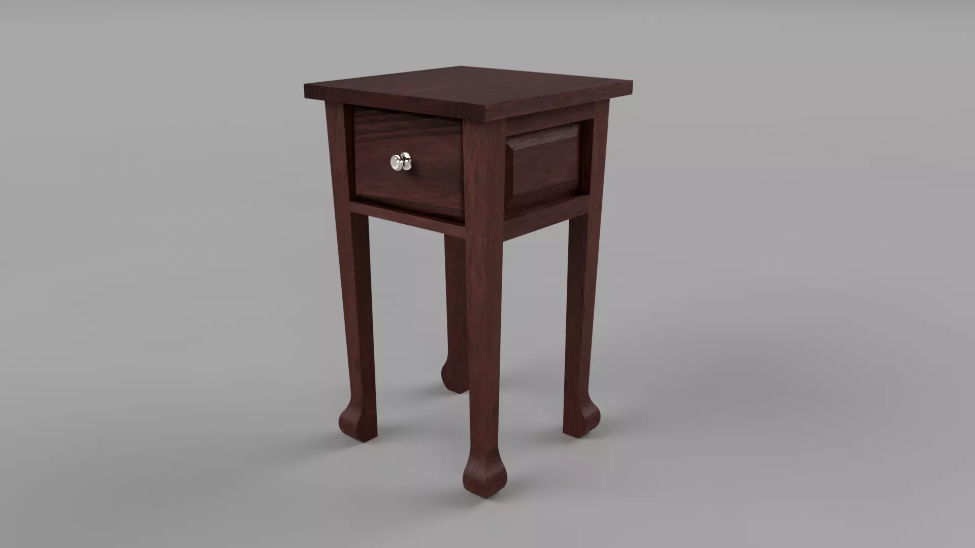 Simple nighstand, made to be built out of wood, small dimensions, classical aesthetics. Can also be used as a prop in games, without texture. Although the model was made to be built, no prototype was ever created, the model might contain small issues. All parts constructing the night stand are fully modelled, channels for panels, mortise and tenon joints, etc. as shown in pictures. Sketch can be extracted from fusion project for build. The aesthetic is inspired by classic hardwood furniture design, made to show off traditional craftsmanship in a moderate-difficulty build. The rendered night stand is made out of dark walnut wood with a silver knob, yet other wood configurations would also look splendid.