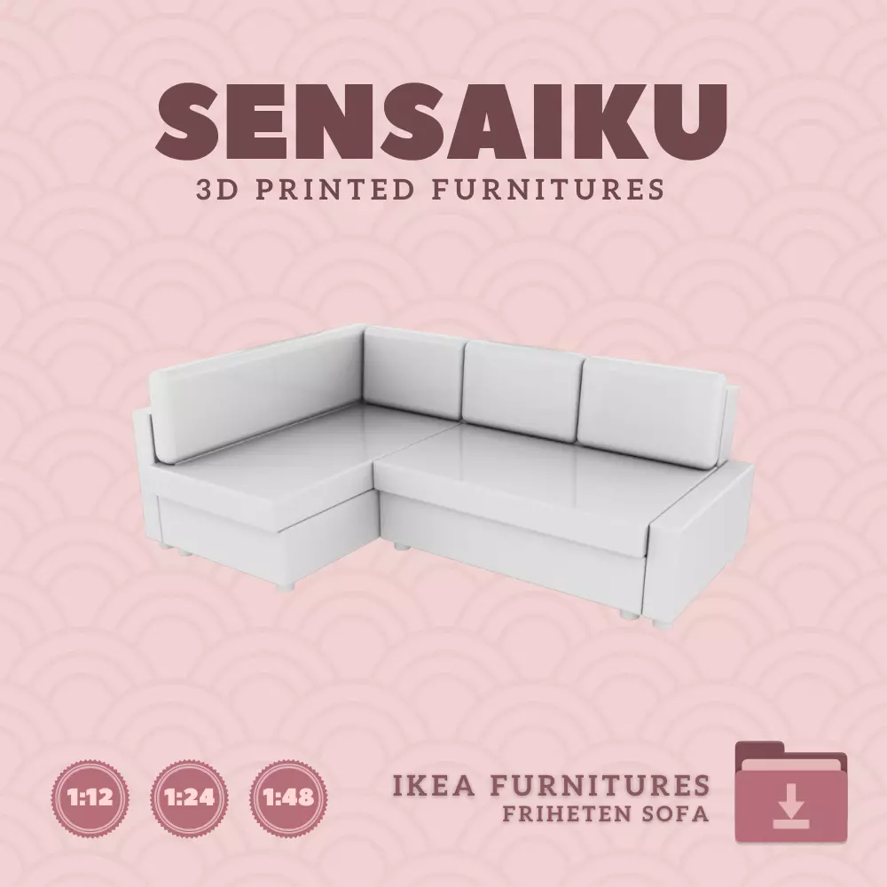 Name: FRIHETEN Sleeper Sectional with 3 Seat SofaManufacturer - IKEARecommended Printer: Resin 3d PrinterSeries: Furniture Designers SeriesScale: 1:12, 1:24, 1:48